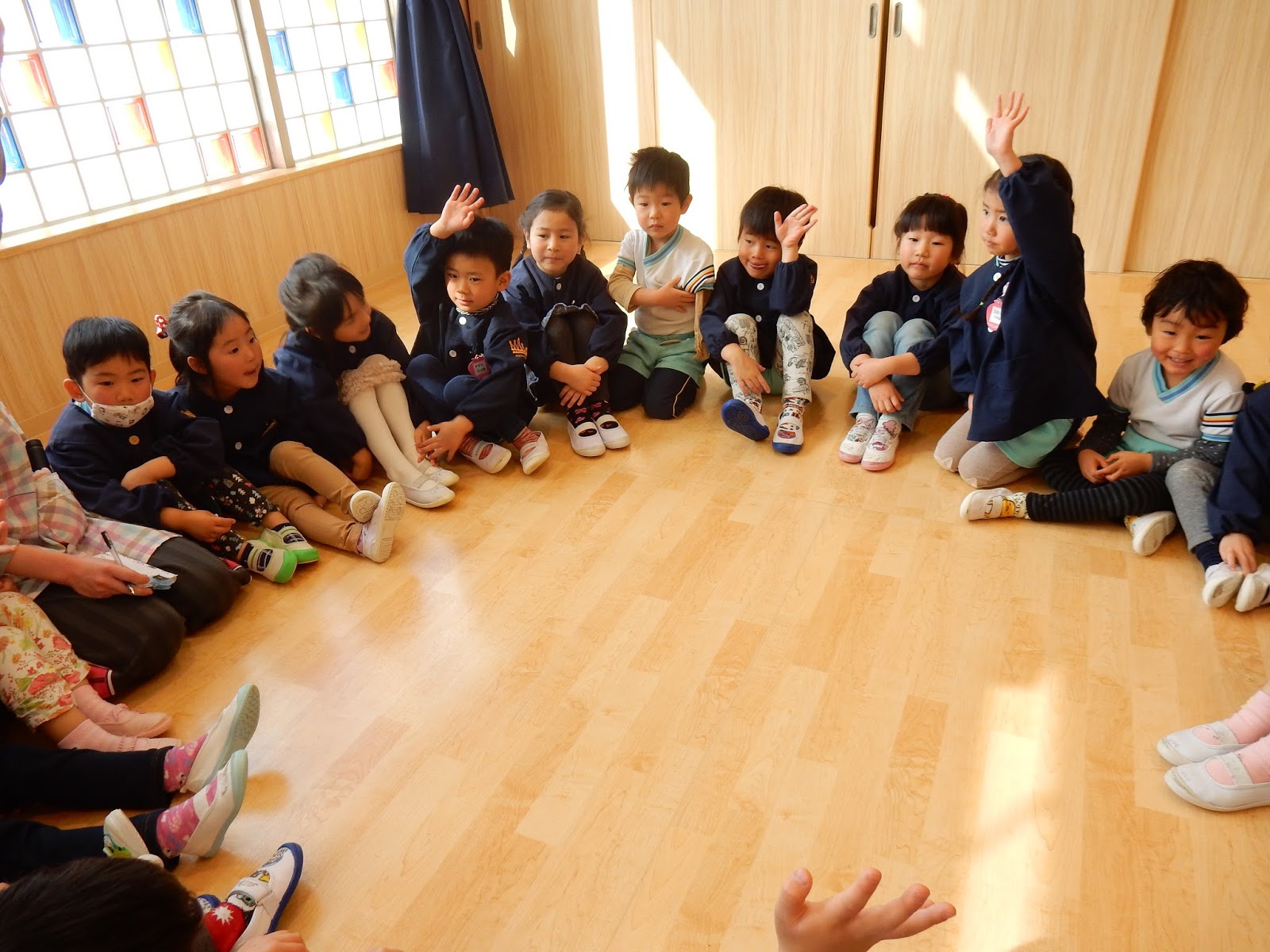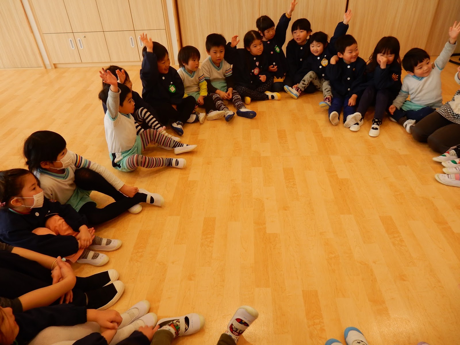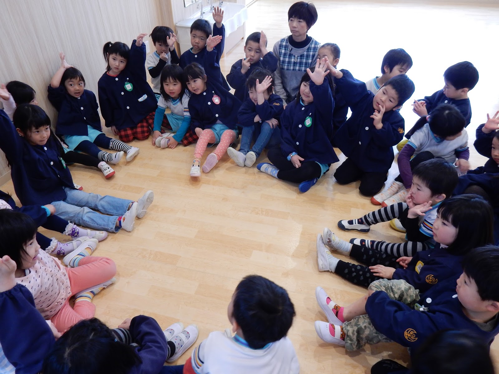 3月のわいわいデーはお店屋さんごっこです♪今日は、3歳以上児さんが集まってお話をしました。グループごとに、何屋さんになるかを決めたんです。集まってみんなに意見を聞いてみると...『マック!』 『うどんやさん!』 『おかしやさん!』いろんなお店がどんどん出てきます。