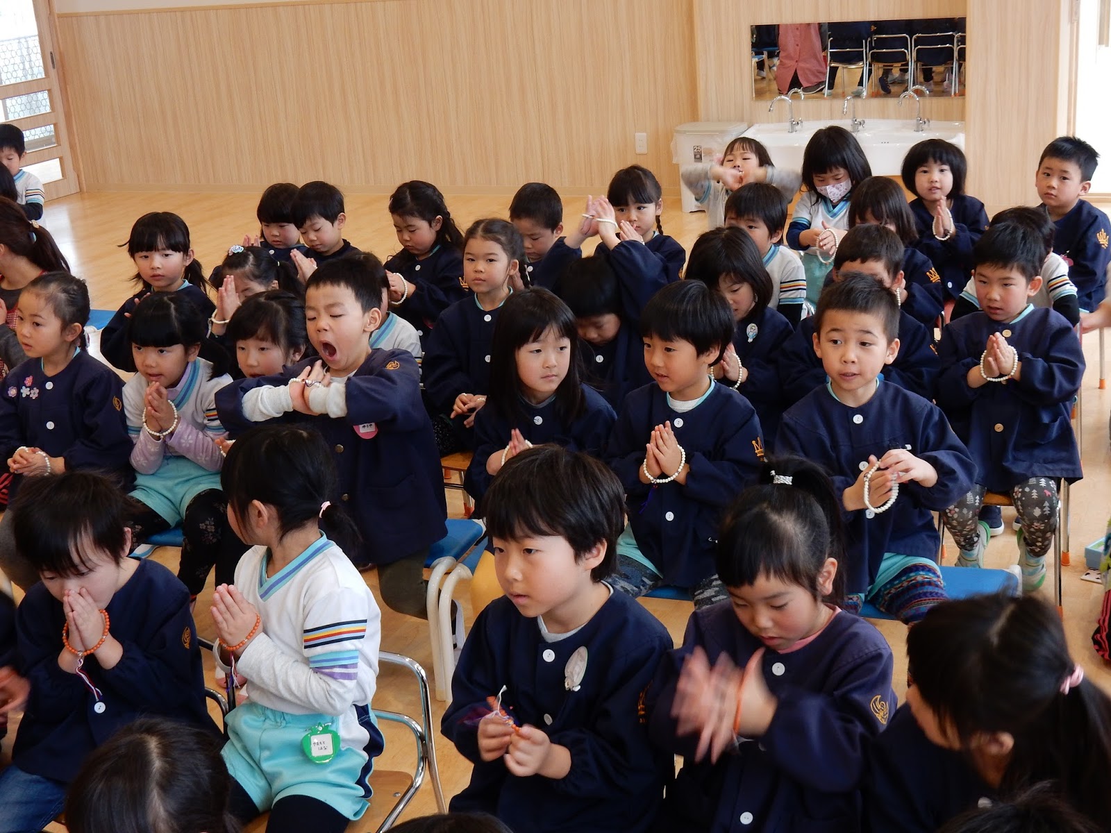 おつとめの時間は、子ども達にとっては退屈な時間だったでしょうが、みんなよーく頑張りました!背筋を伸ばしてきちんと座る時間が1日に10分でもあると、気持ちもシャキッとしますね!