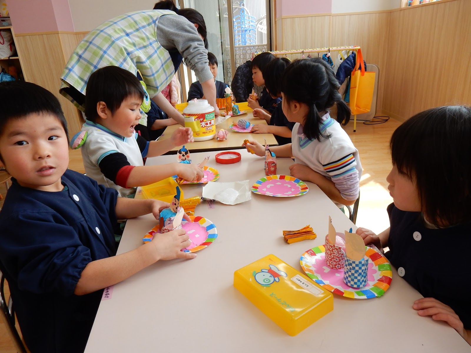 お雛様とお内裏様を手に、楽しそうにお話をしているゆりさん。製作の合間に、お人形遊びをしていましたよ!自分たちで作ったお人形、表情も色々で本当に可愛らしいです!