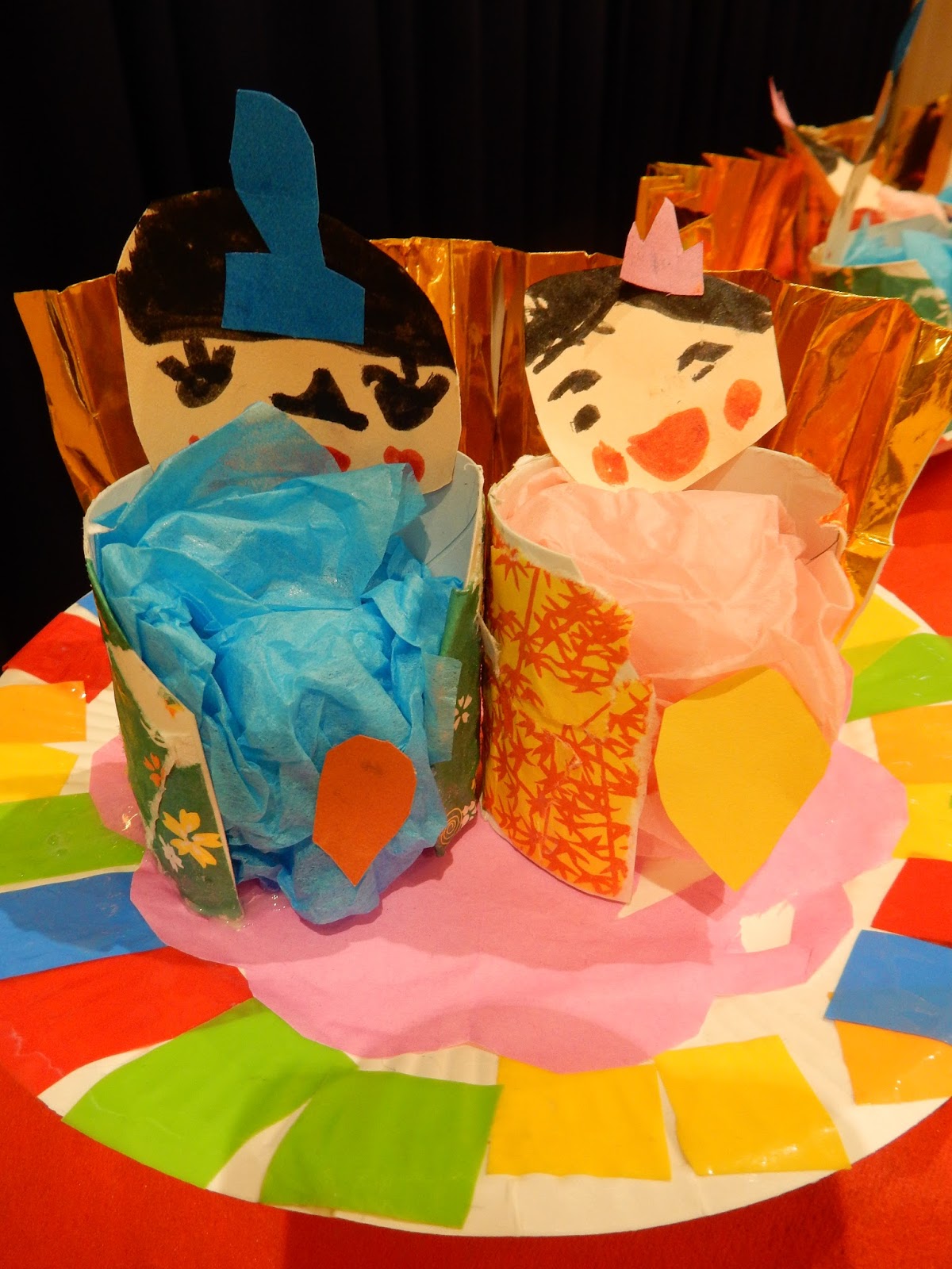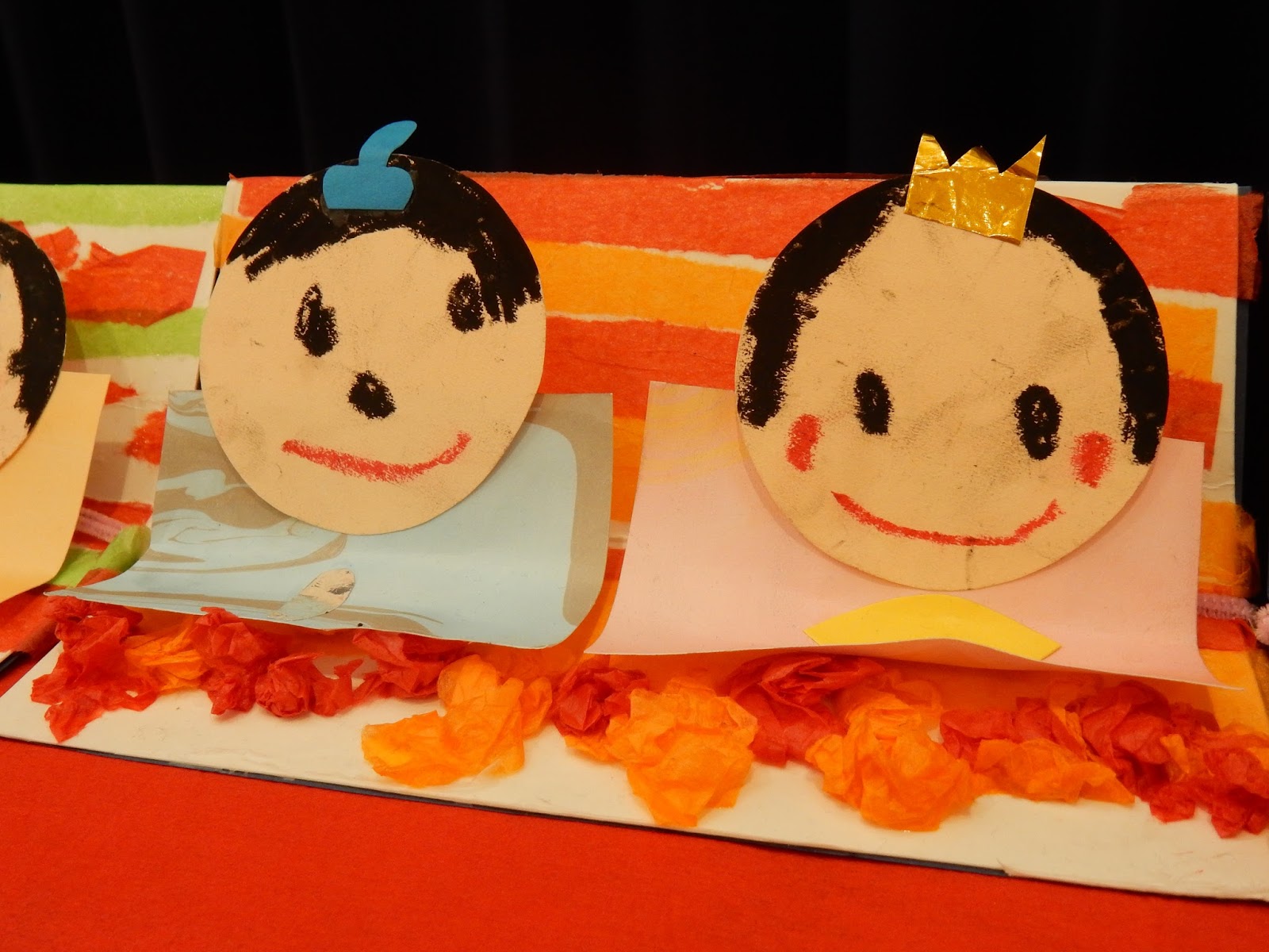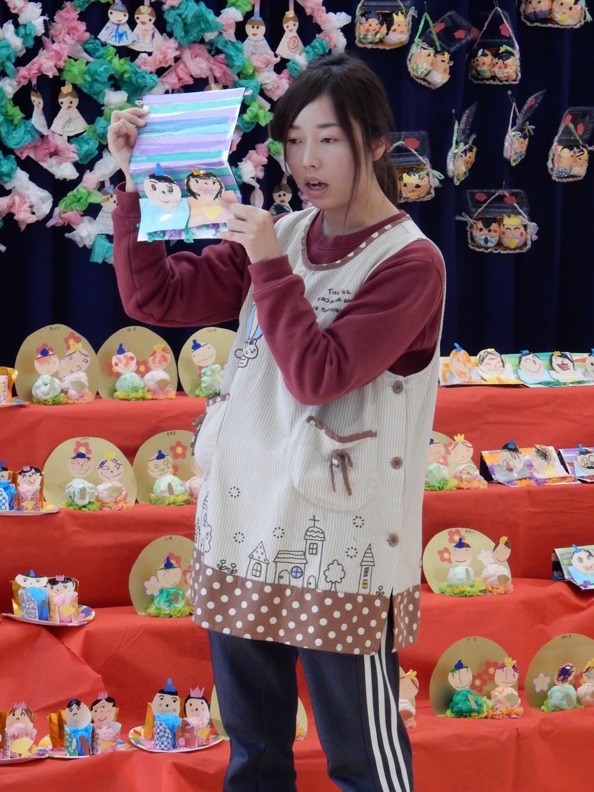 その後は、各クラスごとに手作りお雛様の紹介をしました。どんな素材を使ったのか、どんな風に作ったのかを先生たちが教えてくれました。ひまわりさんの紹介は、2人のお友達やってくれましたよ!みんなの前で堂々と紹介する姿は、さすが年長組さん!とっても分かりやすく、丁寧に教えてくれました。