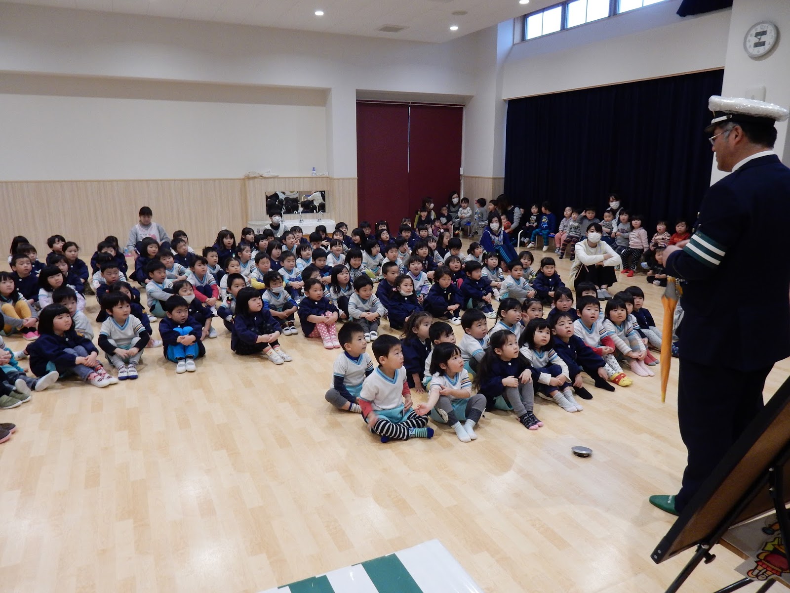 今月の交通安全指導は...なんと!!警察官のおじさんが来てくれました!