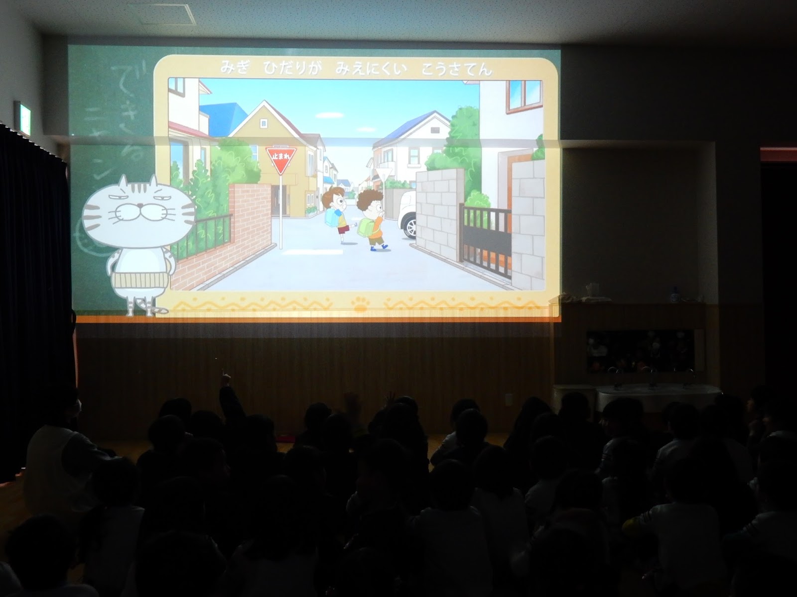 危ない場面がいくつか出てくるDVDを見ながら、どこが危ないか、正しくはどうしたら良かったのか…をみんなで確認。