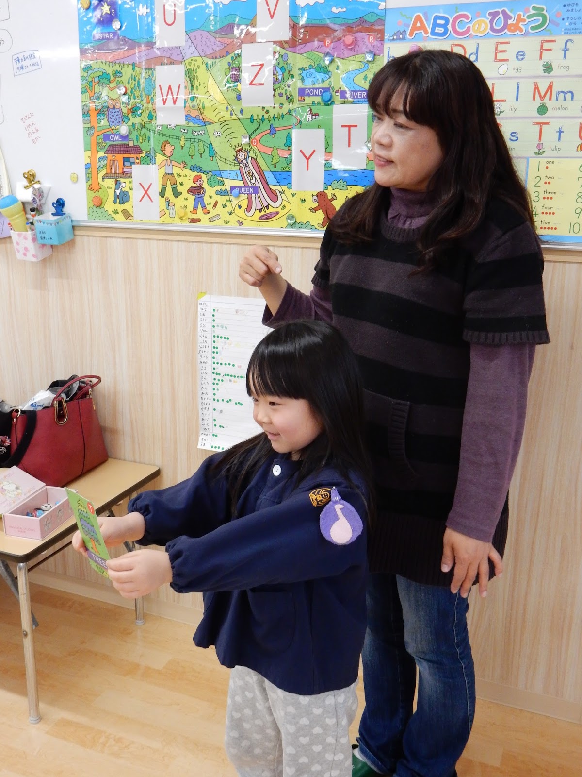 ひまわりさんは英会話。単語をいろいろ教えてもらった後は、ダンスで大盛り上がり!みんな独自のダンスが激しい!!(笑)腕や足を動かすことはもちろん、頭を振ったり、床を転がったり。たぶん、気分はブレイクダンス…写真では伝わりにくいですが…(笑)キャンディー先生の英会話も残り1回。最後まで楽しみましょう!