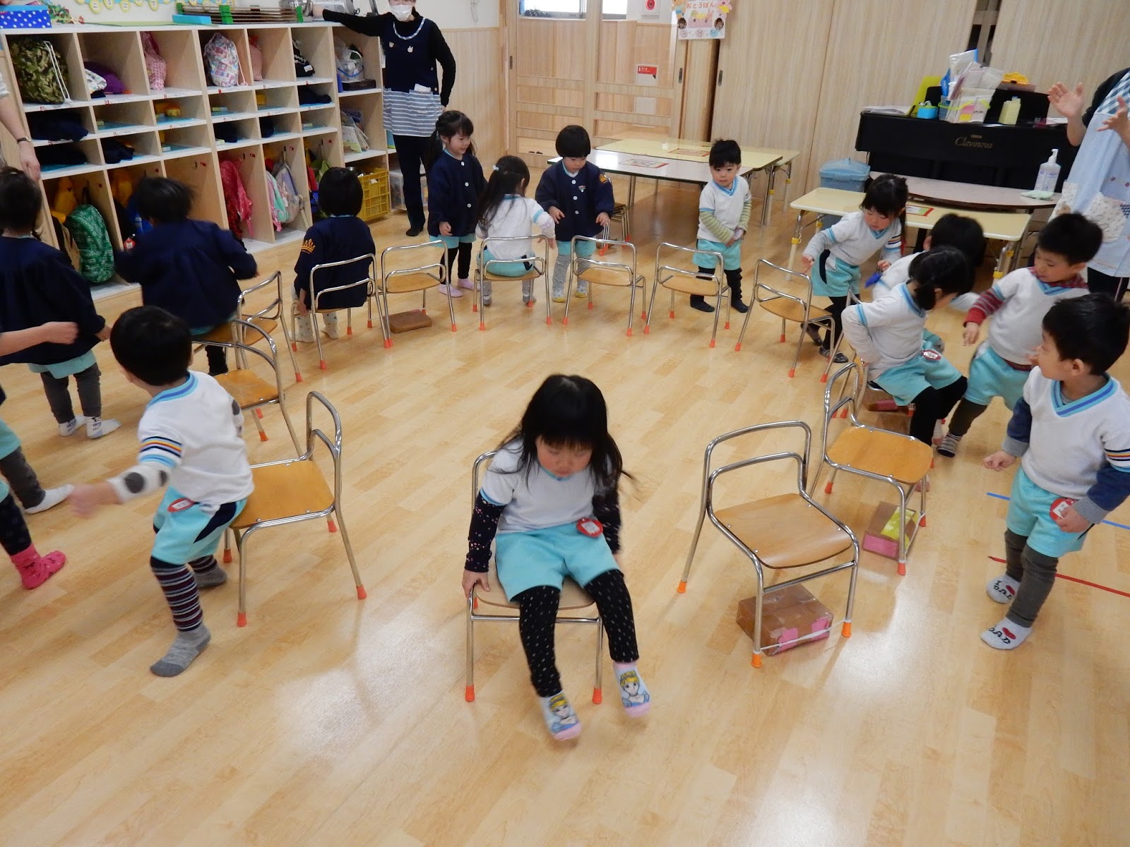 椅子取りゲームで盛り上がっていたのはすみれさん!順番に椅子が減っていってドキドキ…!じーっとお椅子を見ながら歩いていく子、キョロキョロしながらちょっと脱線しちゃう子、音楽が止まって、思わず円から外れて応援席の椅子に座っちゃう子…(笑)すみれさんらしさがよく出た椅子取りゲームは見ててとても面白かったですよ!『またやりたい!』とみんなが話していました。今日チャンピオンになれなかった子も、次回リベンジ!!