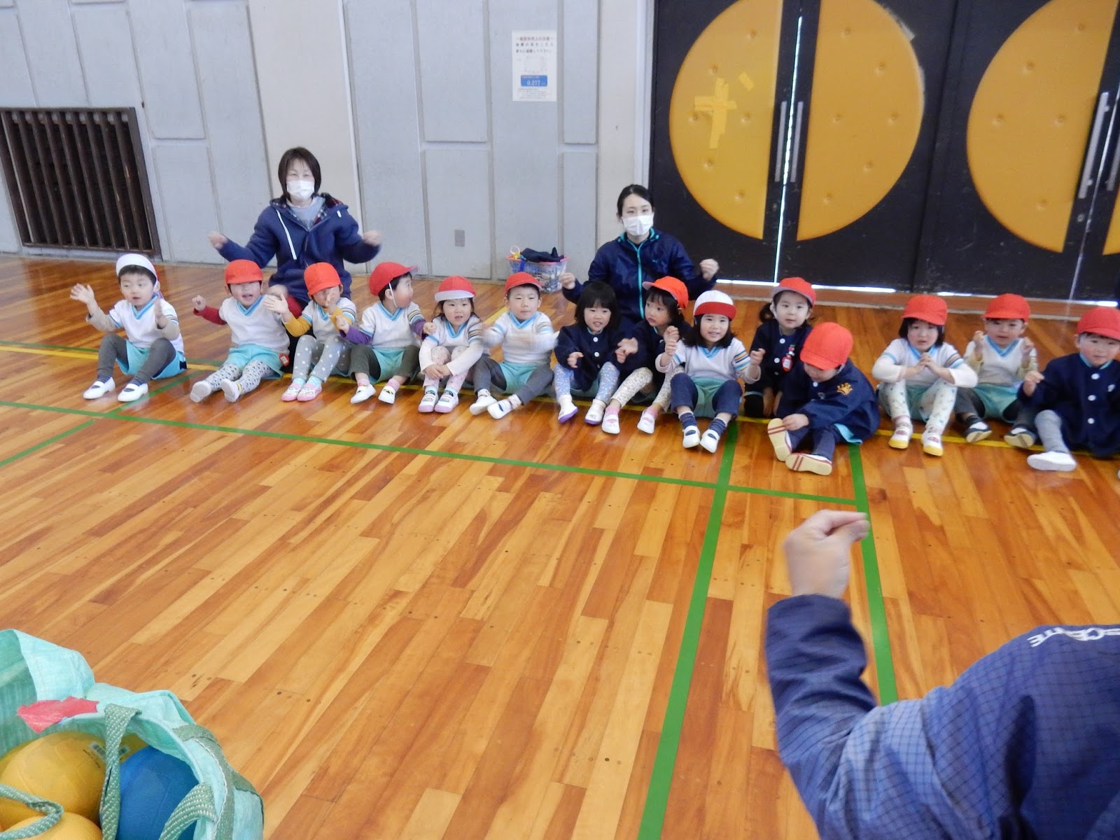 10月から体操教室が始まったすみれさん、ひよこさんも、ゴロゴロ先生の事が大好きになりました!お話を聞く時は、こんなにしっかり座って聞けるようになりましたよ!