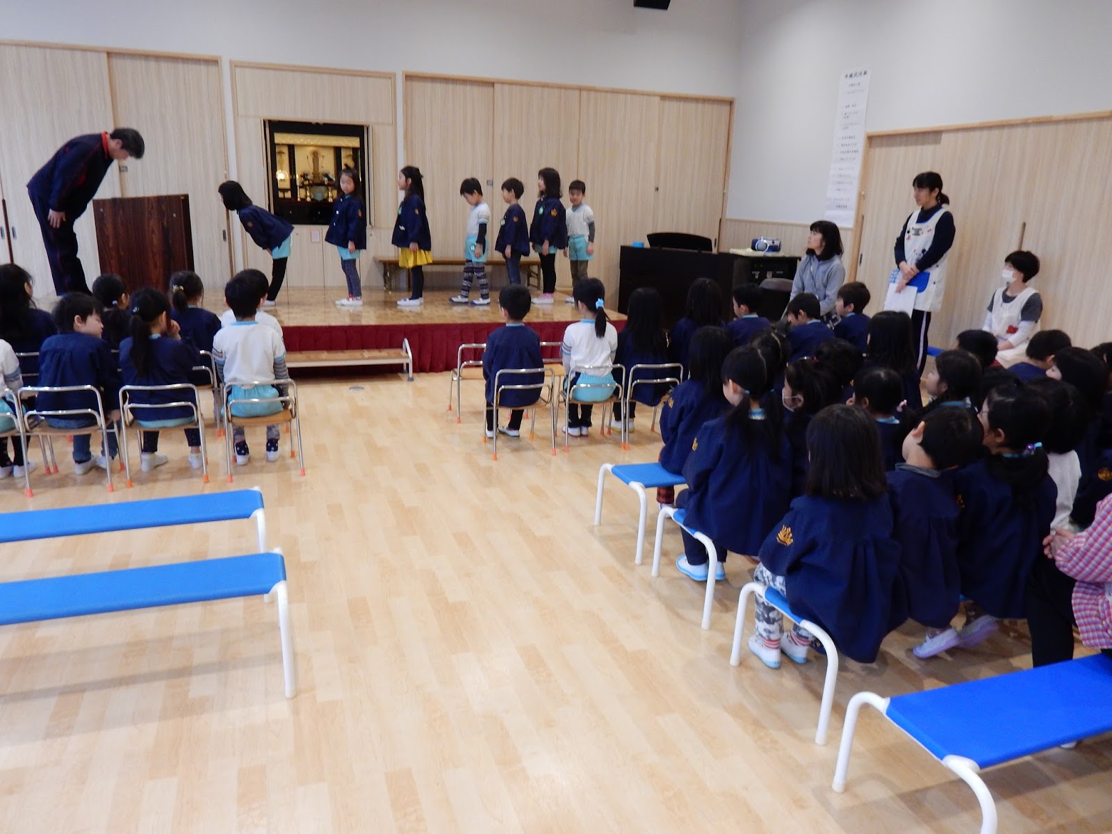 卒園式に向けて練習を始めました。年長さんは、証書のもらい方、入場の仕方など事前に何回か練習をしていましたが、今日は、ゆりさんも一緒に。そして、園長先生にも来ていただき、本番と同じようにやってみました。