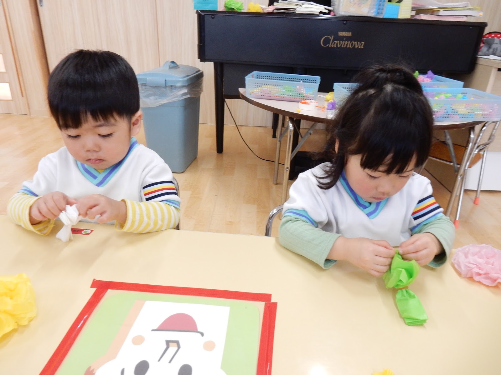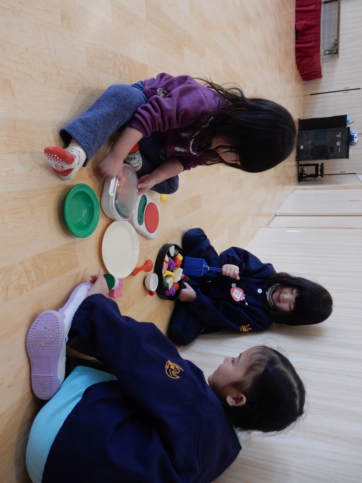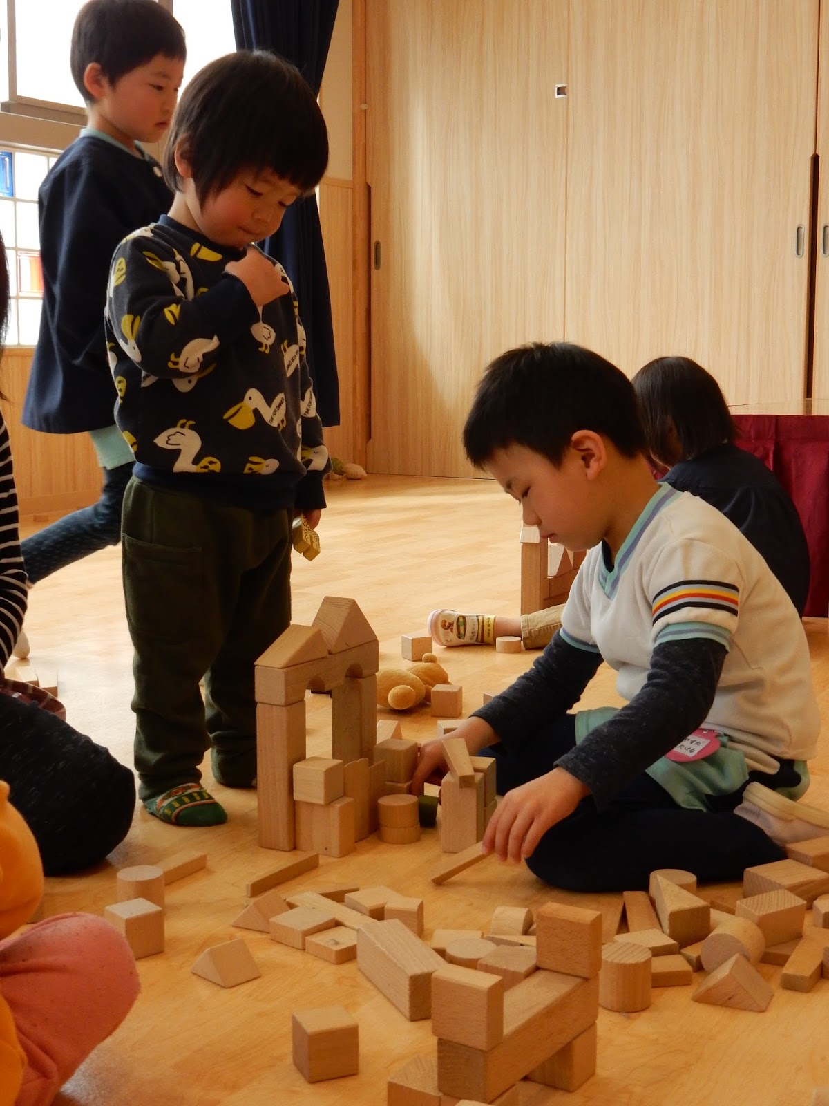 ホールで遊んでいるのは...ゆりさん!と、ひよこさん!今日は2クラス合同で遊んでいたみたい♡兄弟で遊んだり、おにいちゃん、おねえちゃんは小さい子のお世話が大好き♪可愛がってくれる姿が微笑ましいです。時には優しさが行き過ぎちゃって…なぁんてこともありますが、関わる中で、お互いの気持ちを知っていけるんだと思います。楽しい時間が過ごせましたね!