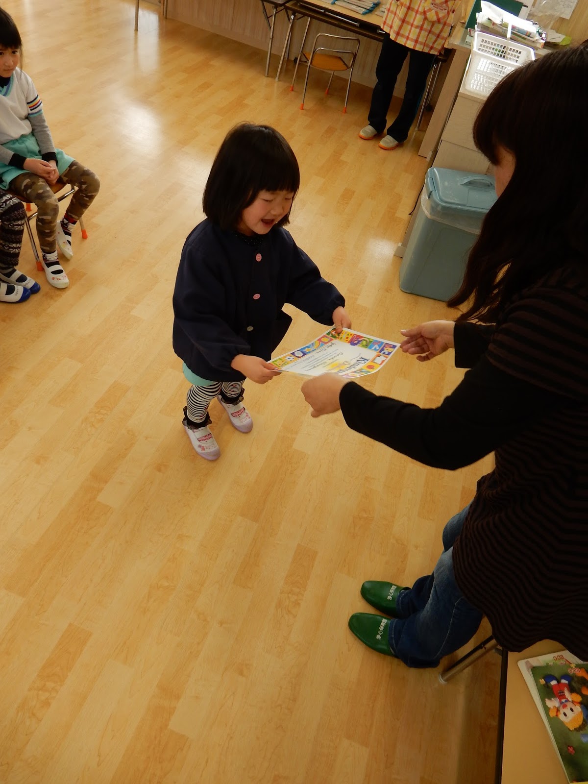 最終日ということで、ひまわりさんは1枚ずつ賞状をうけとりました。もちろん、『thank you!』と英語でお礼を伝えました。