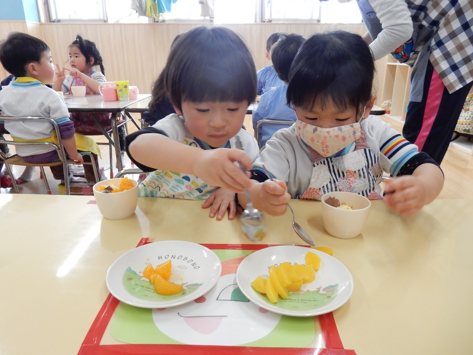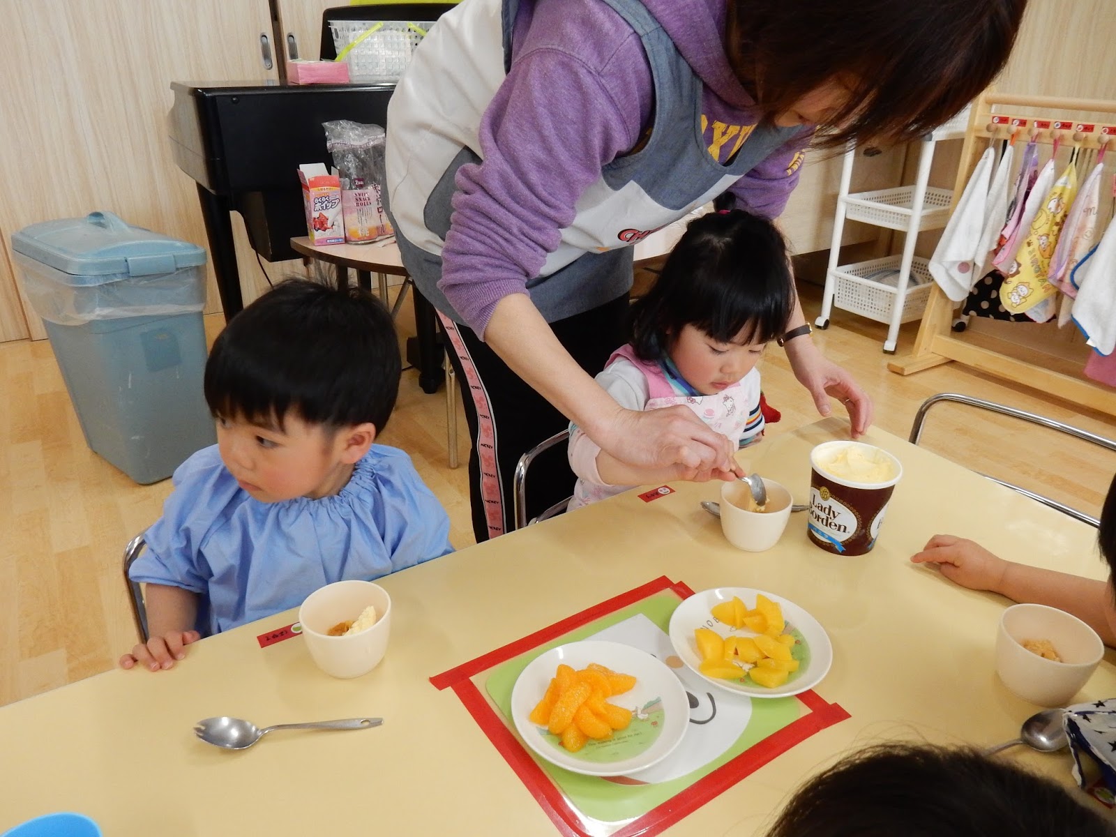 すみれさんでは、最後のクッキングを行いました。最後らしく、豪華フルーツパフェ♪アイスクリーム入り♡コーンフレークを入れたり、生クリームをしぼったり、フルーツをトッピングしながらつまみ食いをしたり…(笑)いただきます!をした後は、みんな黙々と食べていました。写真撮るよ~!と呼びかけてもなかなか手が止まらず(笑)でも、楽しんで、そして美味しそうに食べてくれるみんなの表情が見えて嬉しかったです!