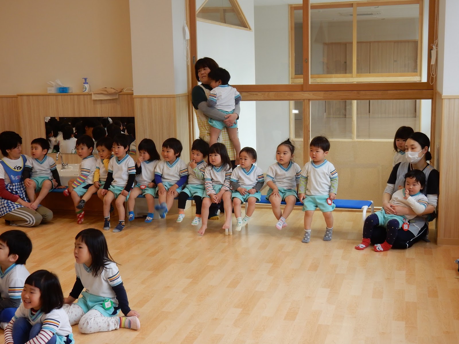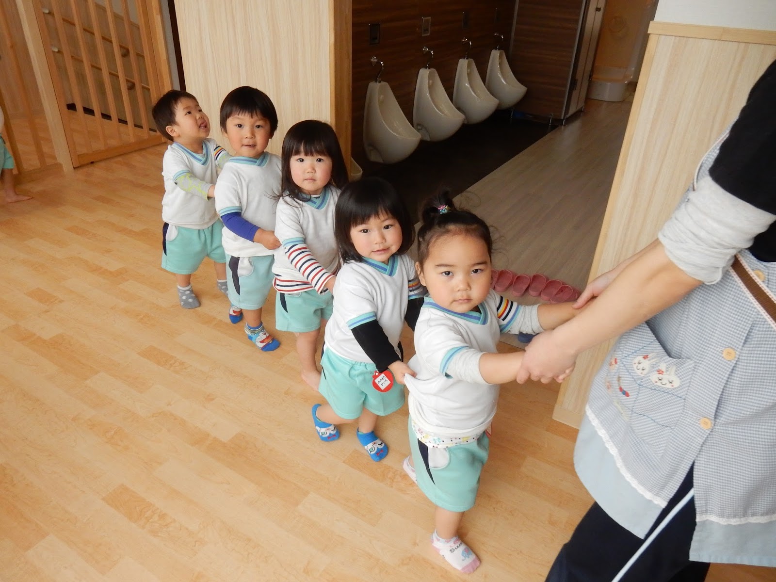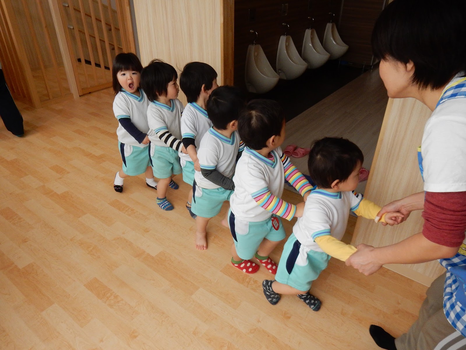 これも園の子って感じですよ!『とんとん、ぴ!!』と号令をかけながらまっすぐ並んでみましたよ!少しずつこうやって園生活に慣れていきます♪