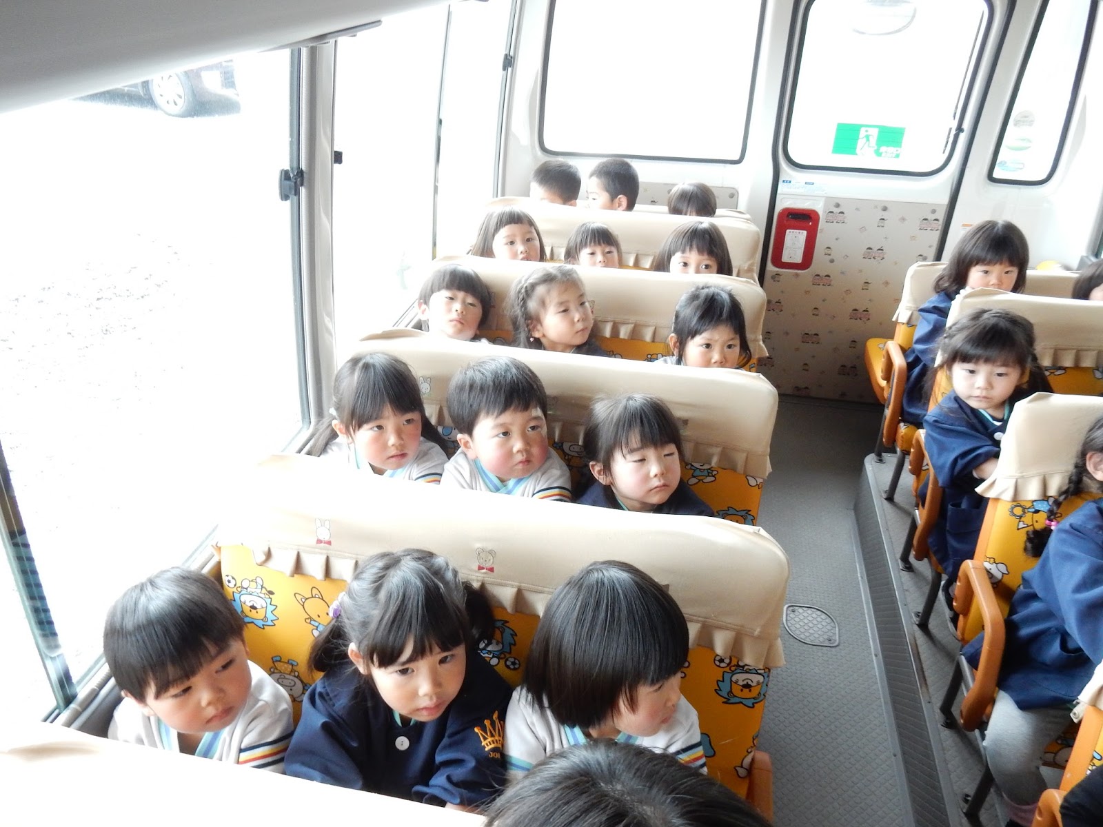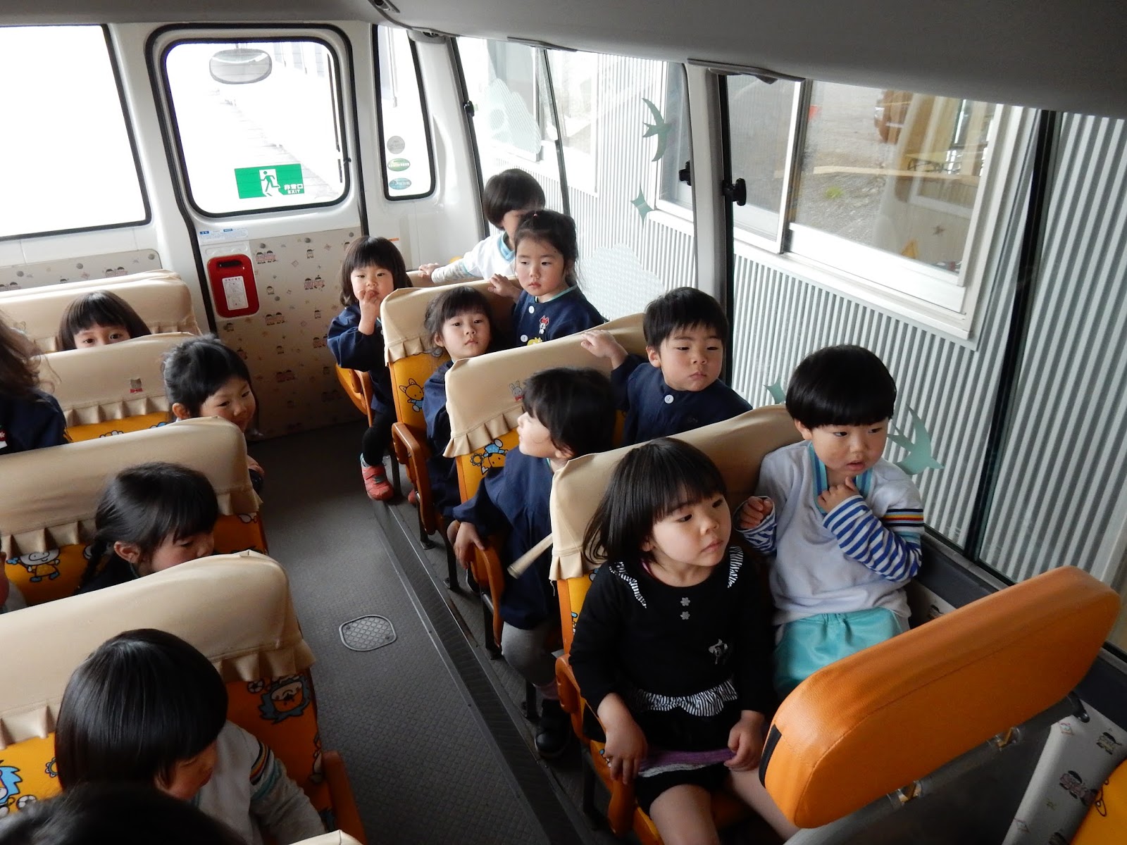 話を聞きながら、みんな『それはダメ~!!!!』とか、『じょうず!!』とお話をしてくれました。これから、遠足や、体操教室などでバスを利用する機会も増えてきます。みんなが安全に、楽しく園外へお出かけできるように、朝や帰りのバスも、安全にみんなを送り届けることができるように、交通ルールをしっかり守って乗りましょうね!