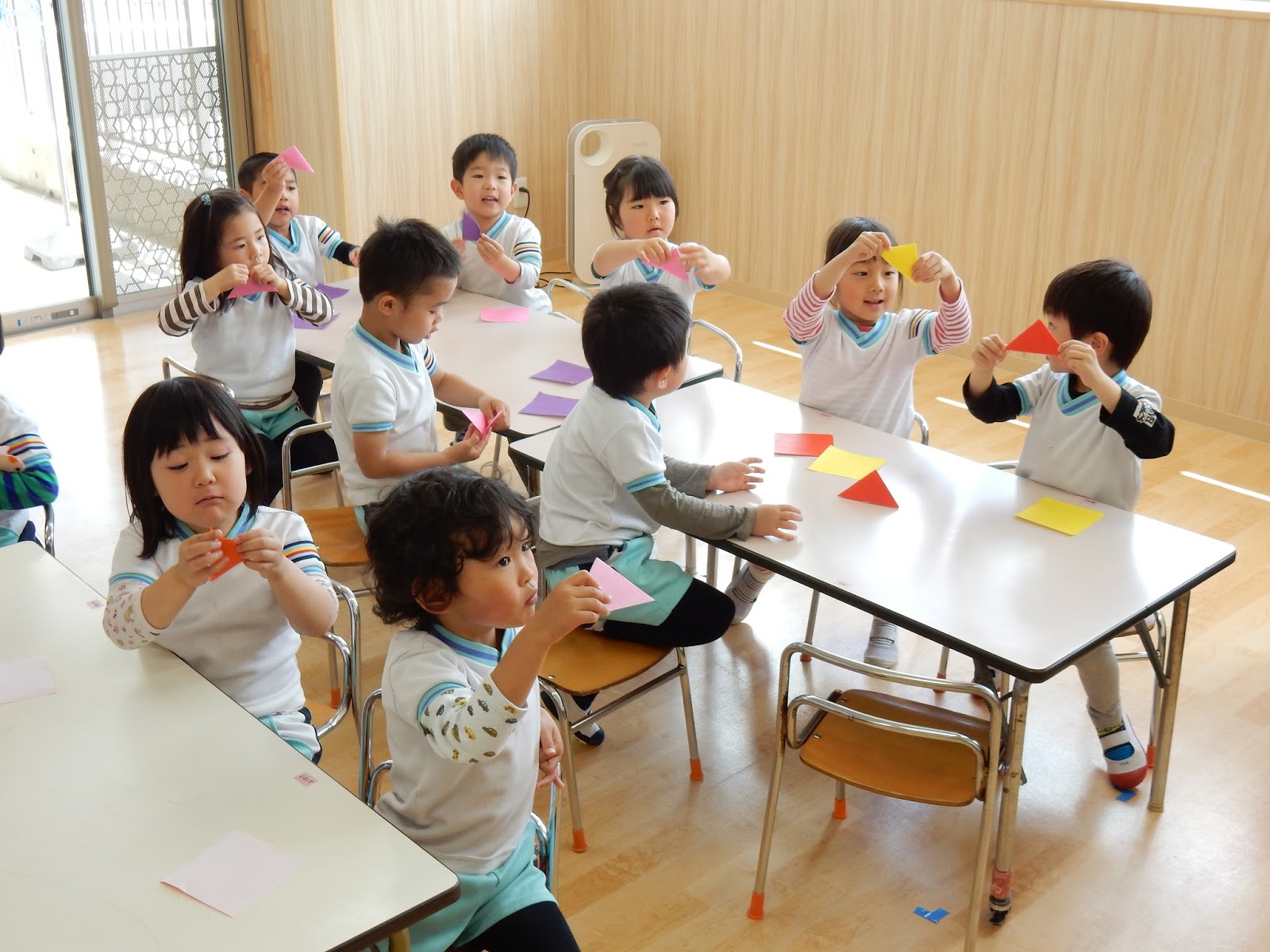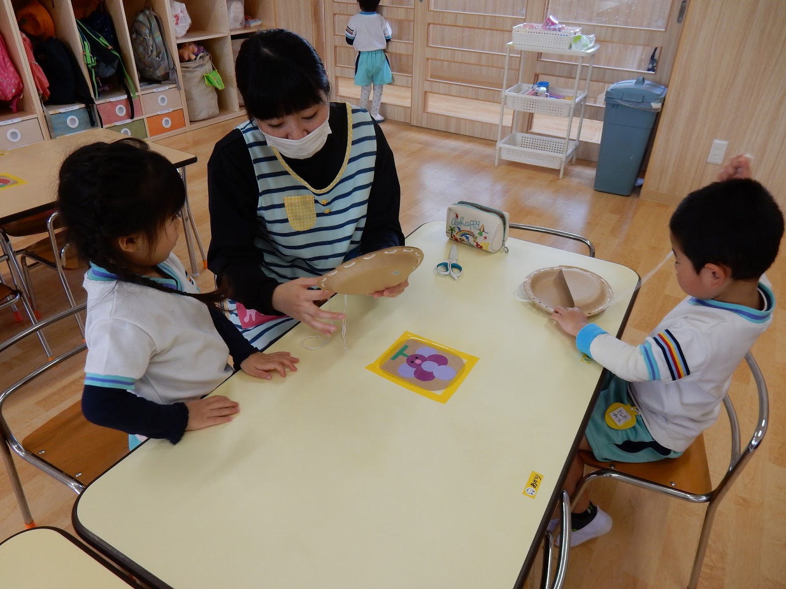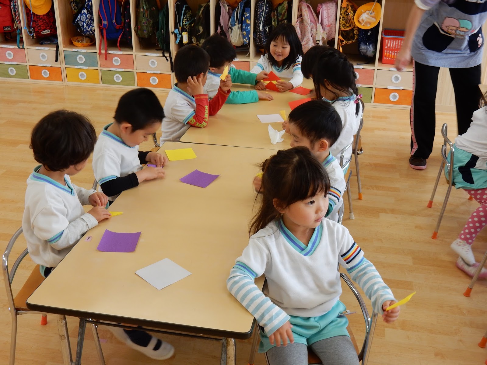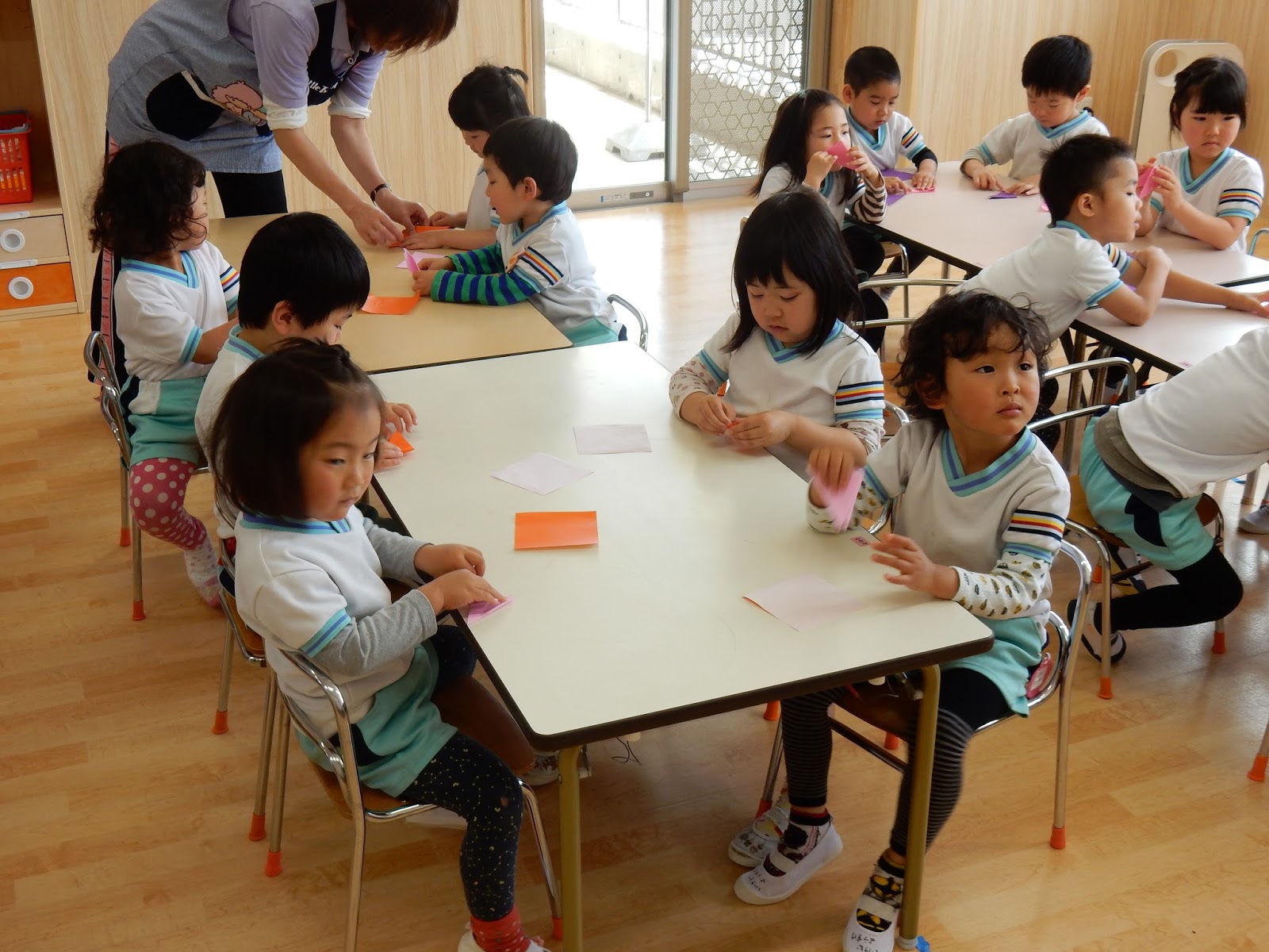 ゆりさんは、折り紙をしていました。三角のお山を作って…先生の説明を聞きながら、上手に折れましたよ!いろんな色のちゅりっぷが出来あがりました!さーいーたー♪さーいーたー♪と、自然とお歌が聞こえてきましたよ!