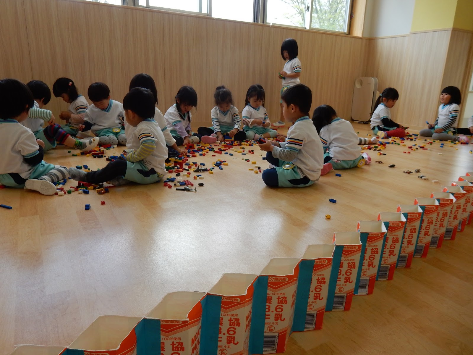 たんぽぽさんのお部屋には、真剣な顔が一杯!たくさん開いた穴に、毛糸を通しているお友達は、じーっと下を向いて集中しています!レゴブロックで遊んでいるお友達も、たかく重ねてみたり、ピストルの形にしてみたりと、夢中で作っています!