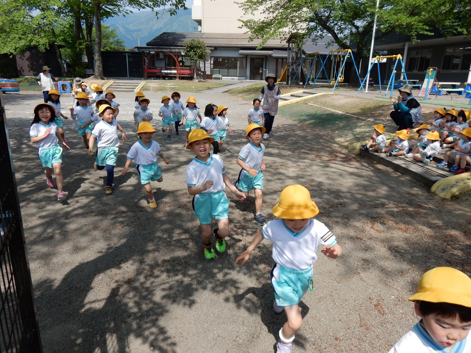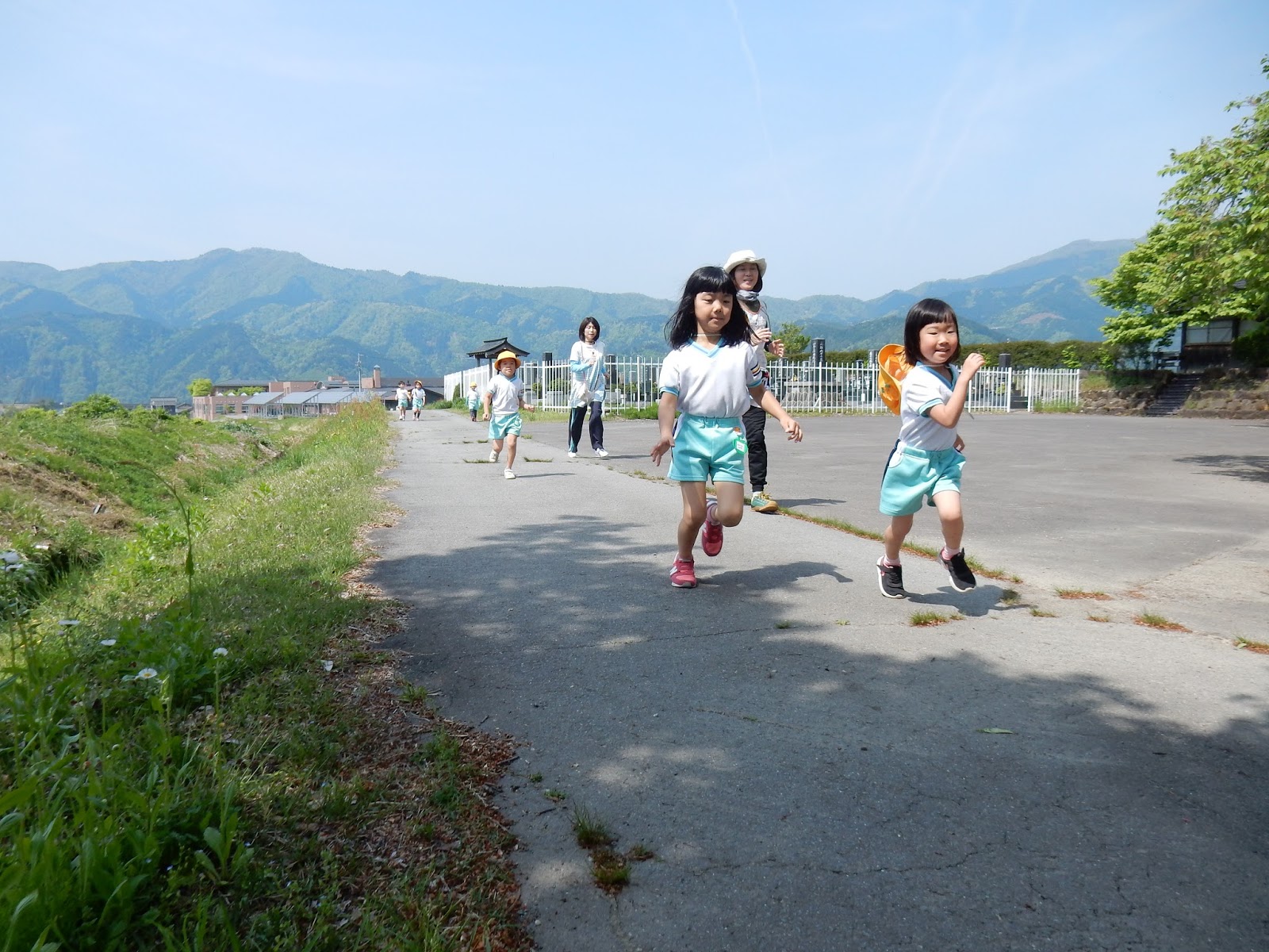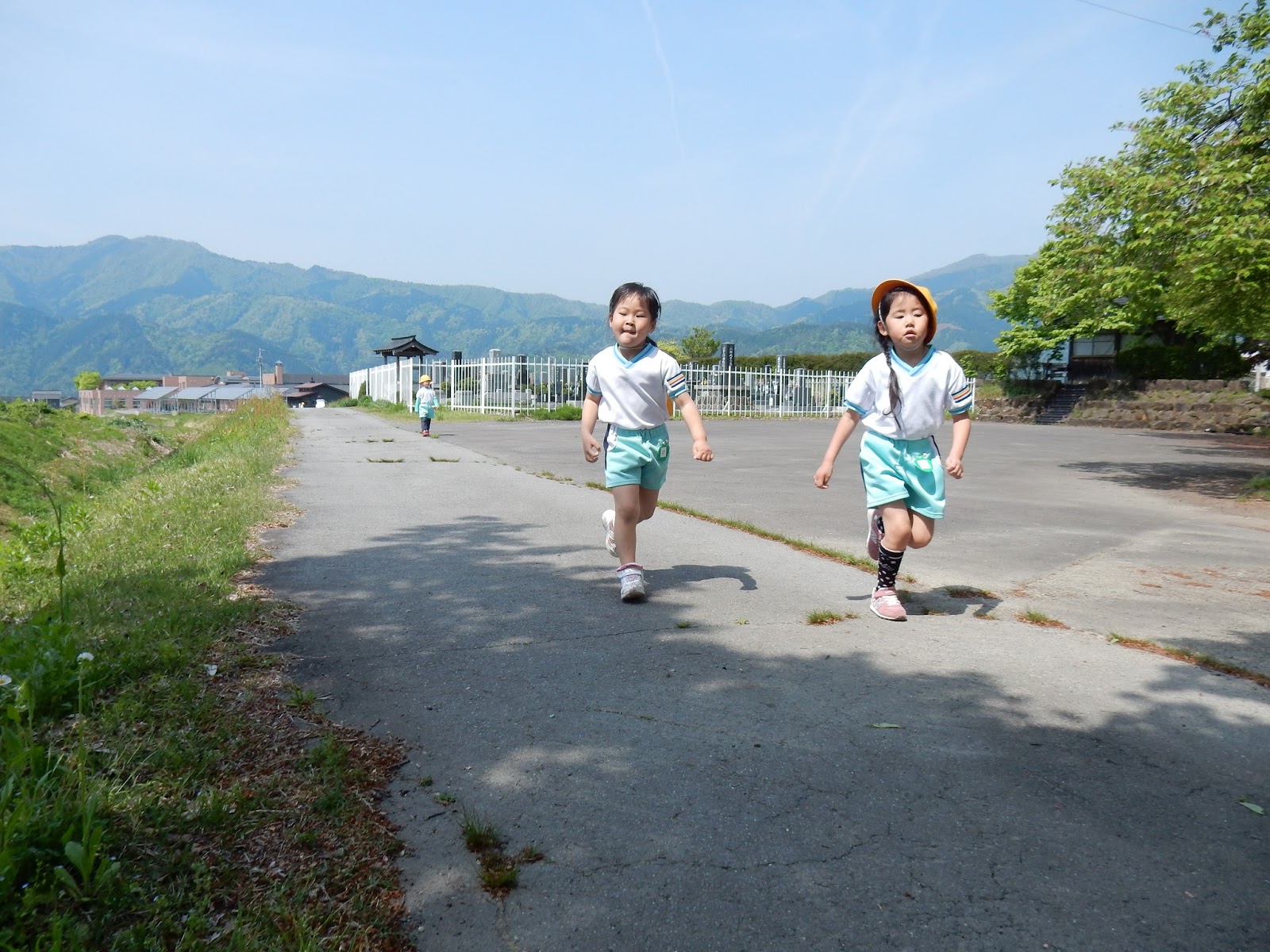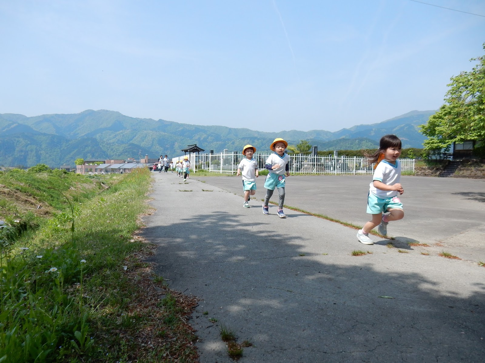 よーいどん!で元気にマラソンに駆け出して行ったみんな。新緑がとってもきれいなこの時期、写真を撮っていても気持ちがいいです。明日は、天気が悪いみたいなので、今日のお日さまはとっても貴重♡みんなたくさん遊んでいましたよ!