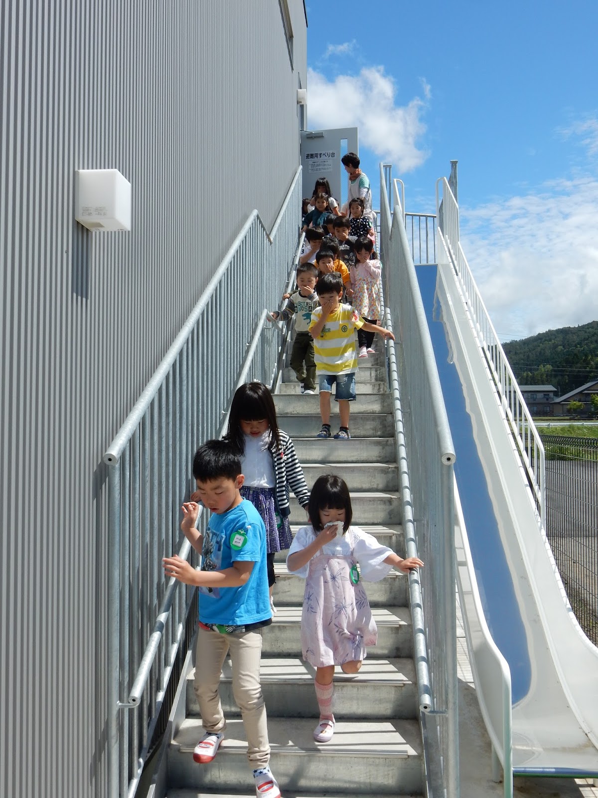 その後は、避難階段やすべり台も利用して全員怪我なく避難完了!!!初めてでしたが、だれも泣く子がいなかったことにビックリです!