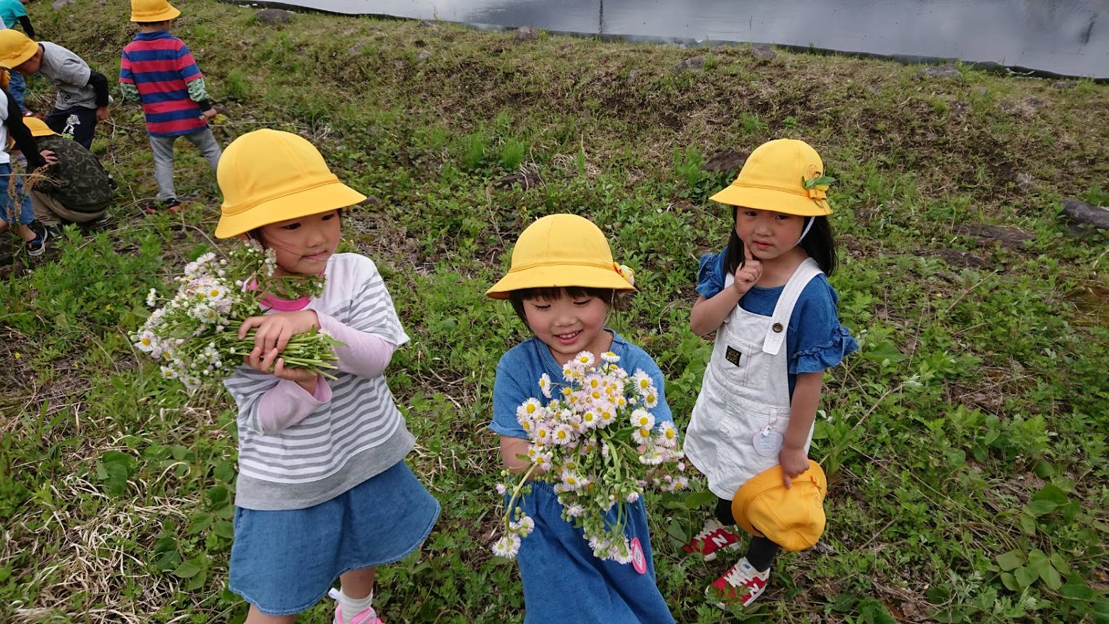 ゆりさん、ひまわりさんも、近くの空き地へ行ってきました。お花を一杯につんで持って帰ってきた女の子、『ママへのお土産だよ!』ととってもいい笑顔を見せてくれました♪
