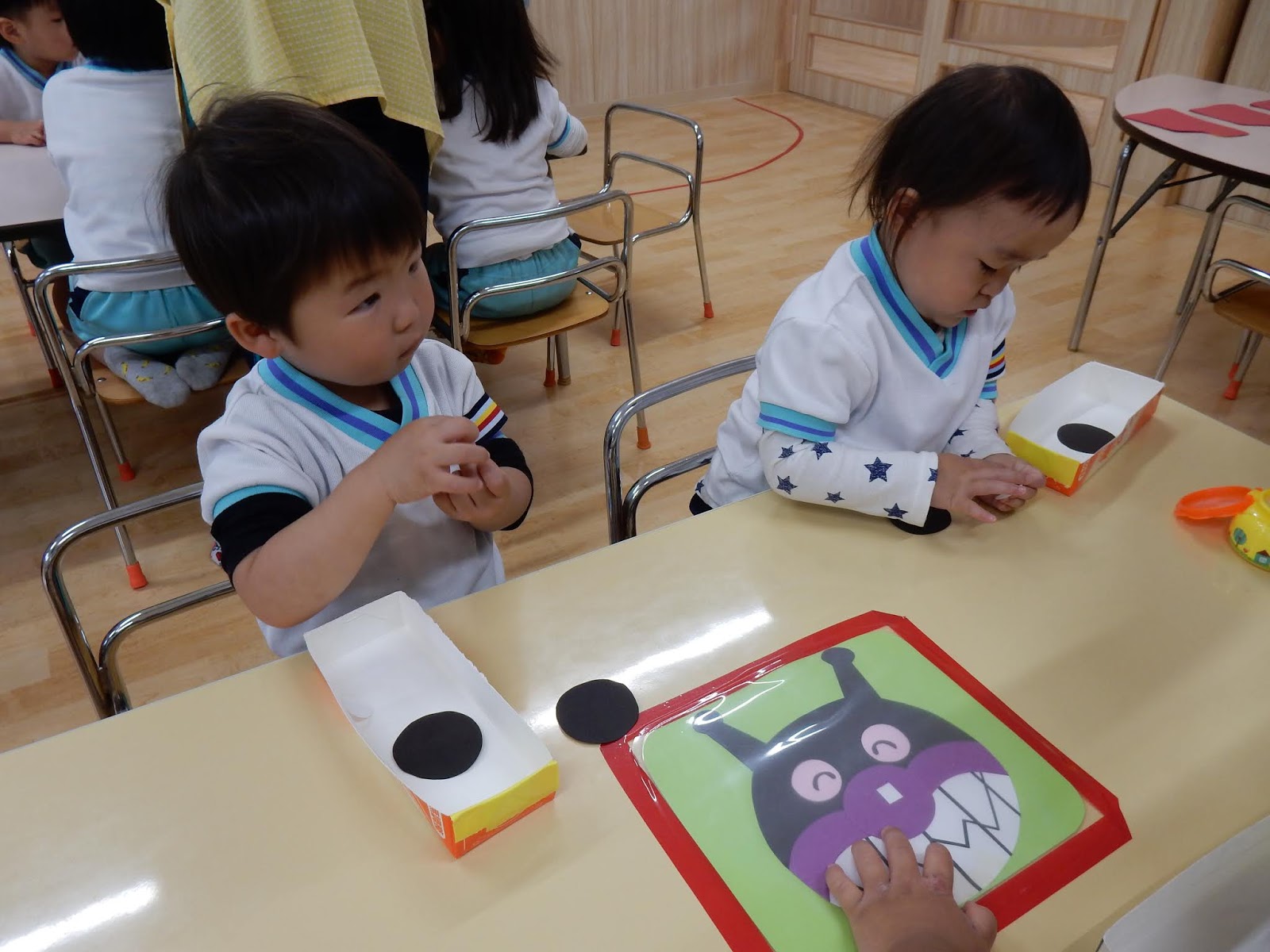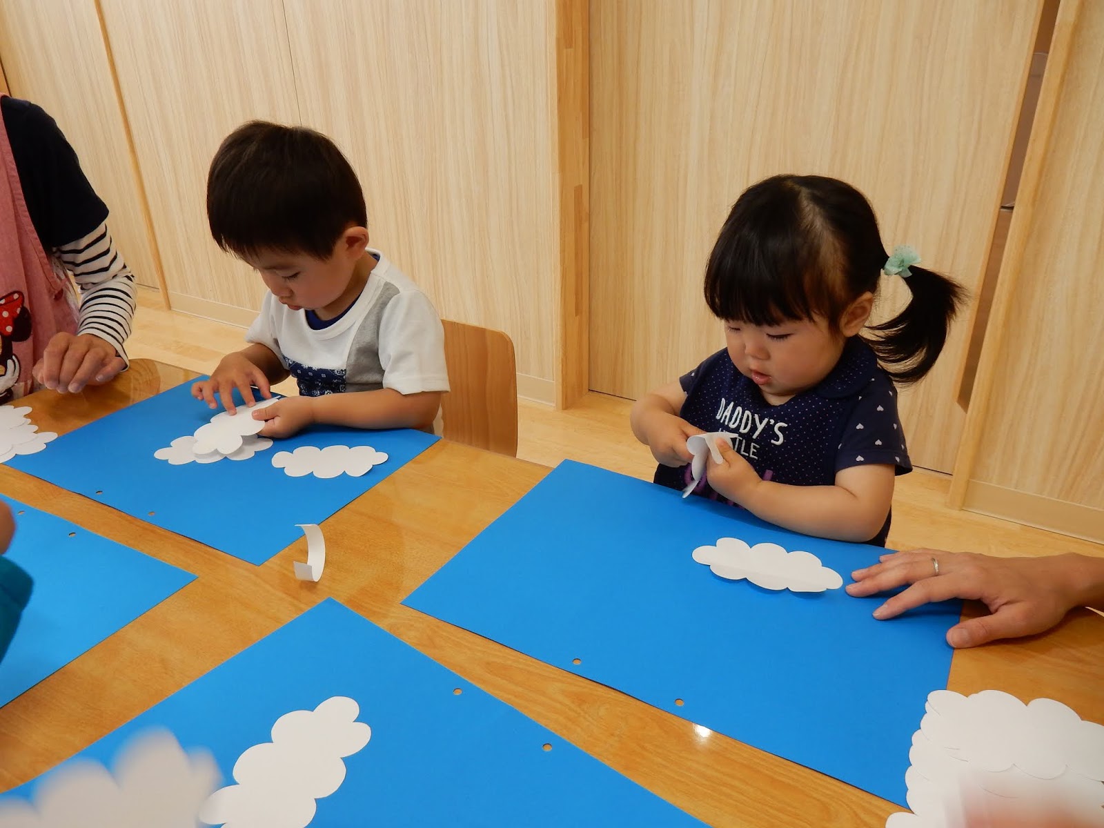久しぶりに雨が降り、お外で遊ぼうと準備をして出てきたゆりさんも、すぐにお部屋に戻っていきました。ざんねん!!今日は、お部屋での活動が多かったです。いいお天気が続いていたので、製作もいい気分転換になりました♪