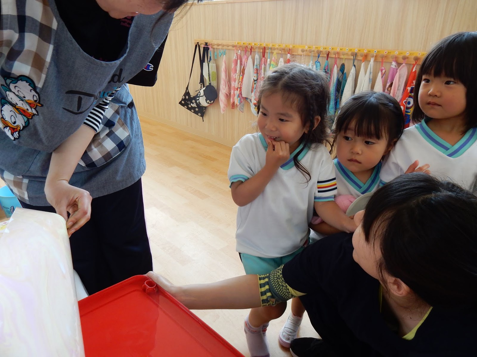 明日に遠足を控え、今日はお腹の調子を悪くするお友達が…お休みをしている子もいて、少し心配です。近所の園でもロタウイルスが流行っているというお話もありました。子ども達も楽しみにしている遠足です。楽しみですが、体調が万全でないと、暑さも加わり、出先で具合が悪くなる事も考えられます。くれぐれも、無理をすることがないよう、ご家庭での様子を注意して見ていただけるとありがたいです。