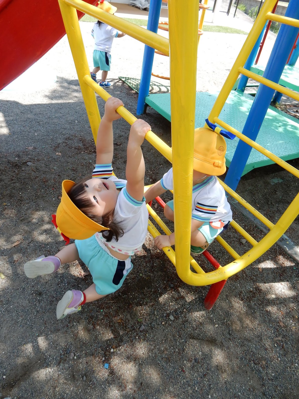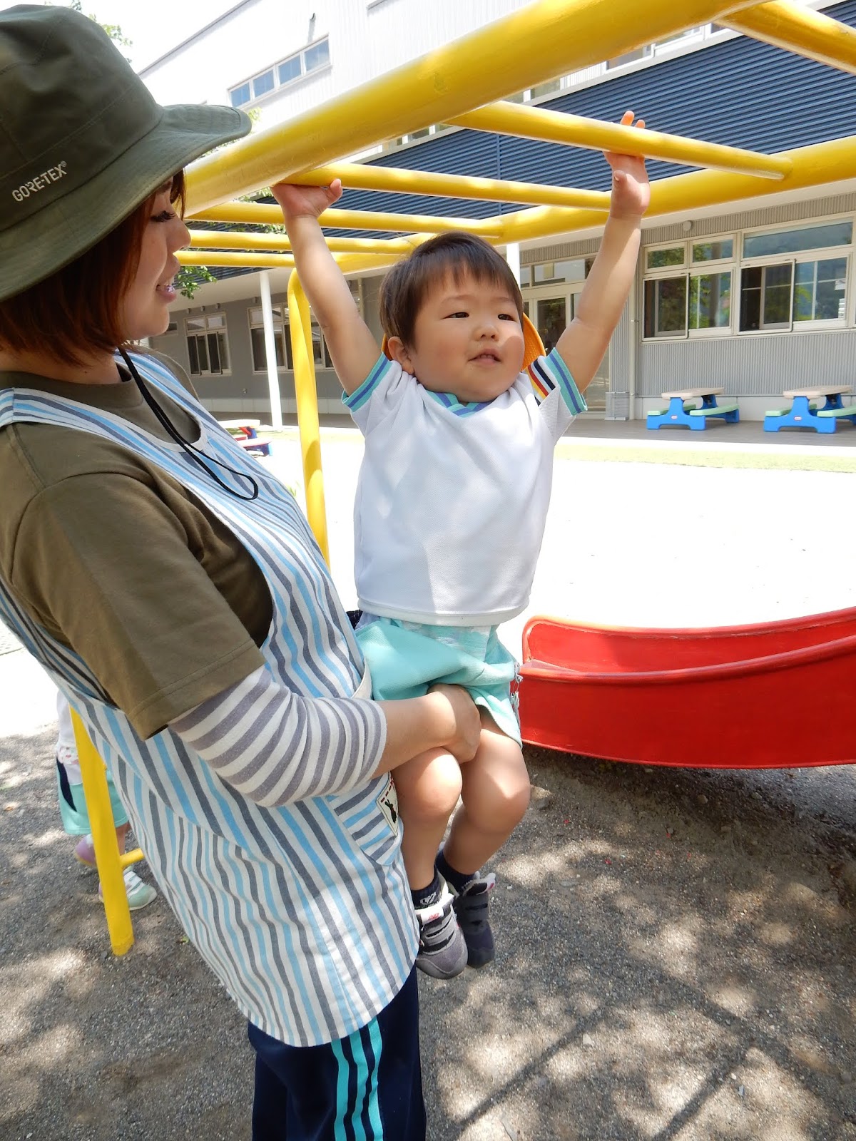 元気に園庭で遊んでいたすみれさん。お空に見つけたヘリコプターに向かって、『おーーい!!!』ボールを投げたり、蹴ったり、追いかけたり。遊具でも、髙い所に登りたかったり、色々挑戦したいお年頃♡ちょっぴり怖いけど、先生に手伝ってもらいながらやってみると、出来たときの笑顔がとっても!!!可愛らしいです!