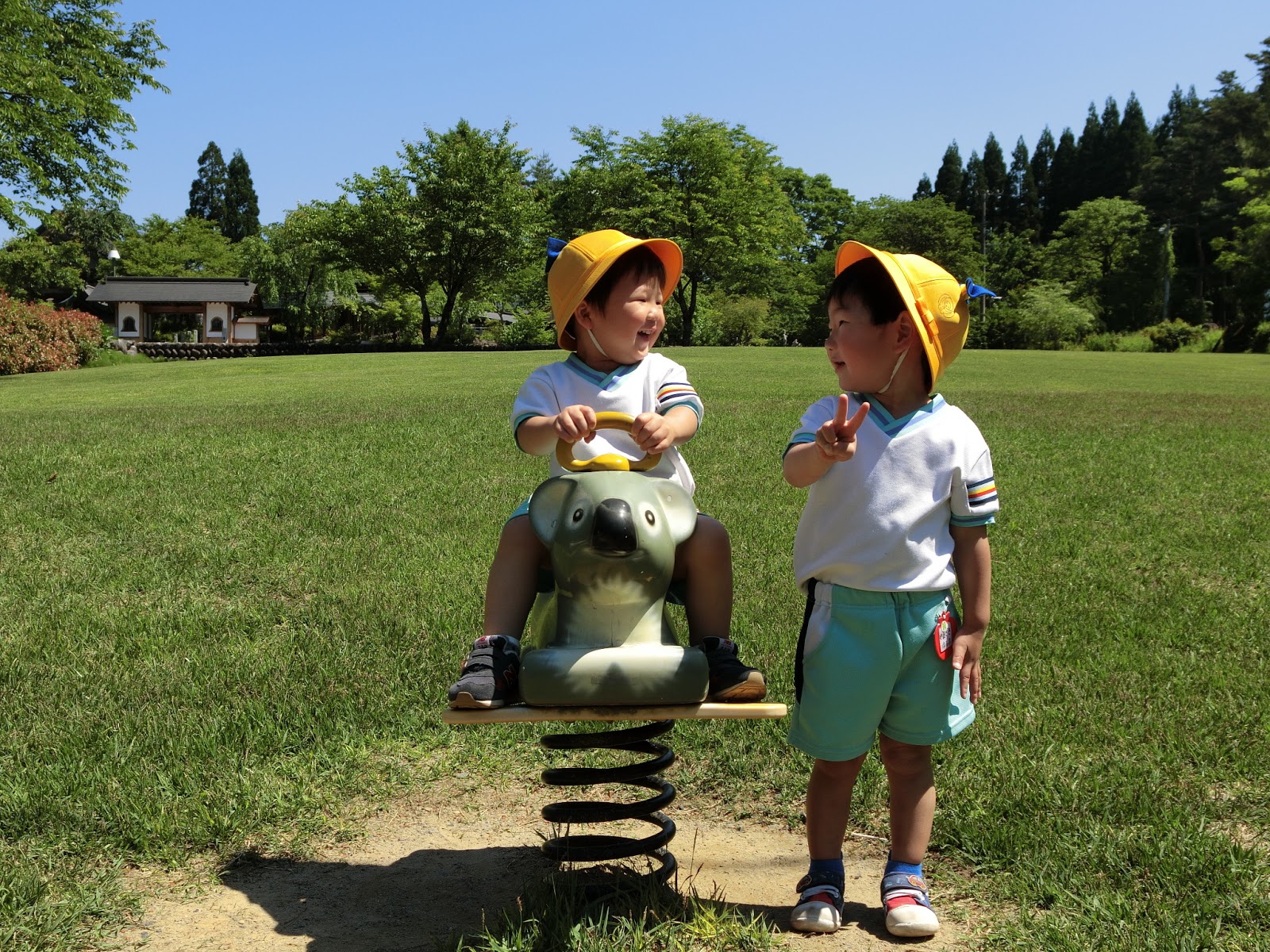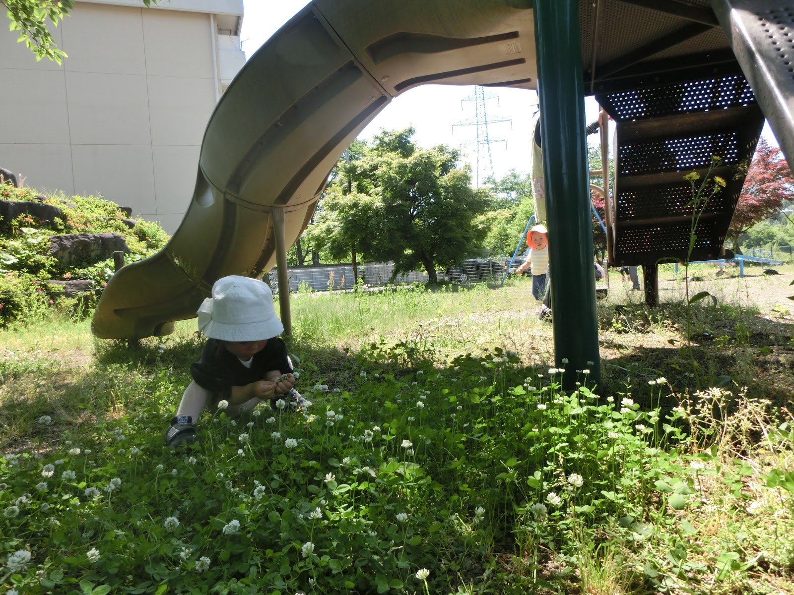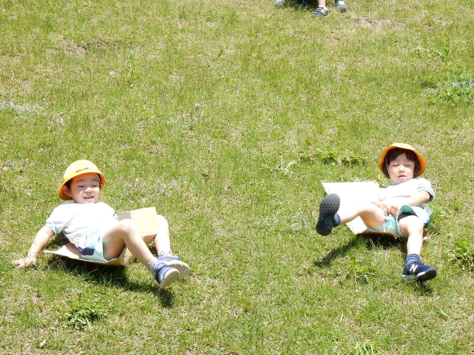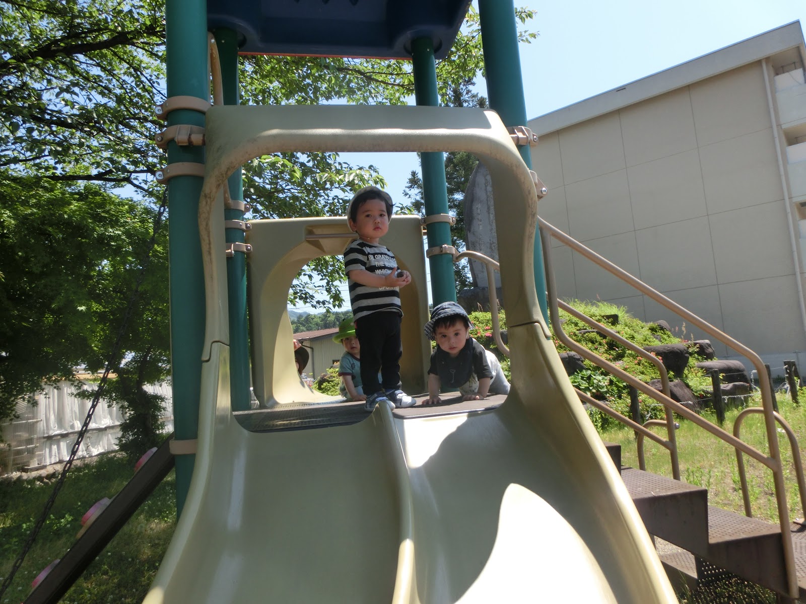 午前中は遊具で、お弁当を食べて午後からは芝滑りを楽しんできました。2クラスで一緒にお出かけすると、ゆりさんは、ひまわりさんの遊びを見てマネしてみようと挑戦したり、普段はなかなか見られないやりとりも見られます。お互いに、刺激し合って遊んだり、学んで行けるといいですよね!