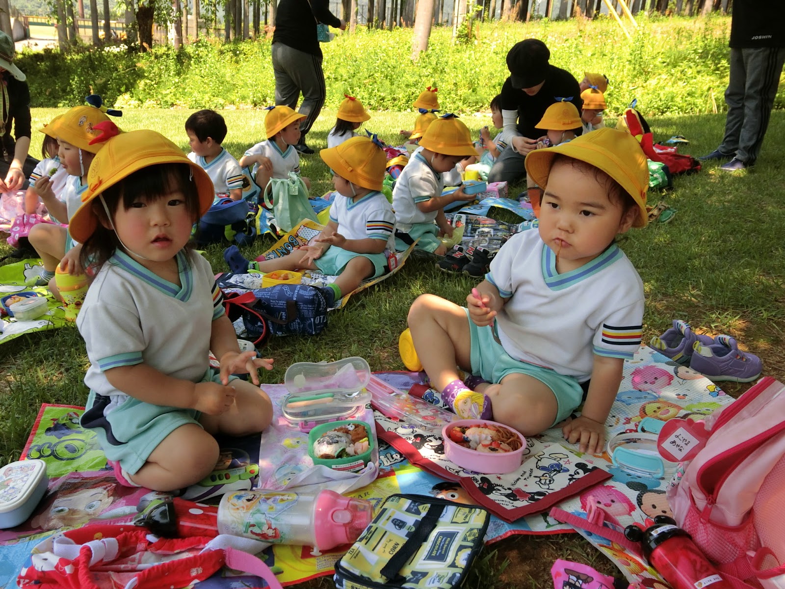 いつもとは違う遊具や、広い芝生を思い切り走ったりと、目いっぱい遊んだ後のお弁当はとても美味しかったでしょうね!