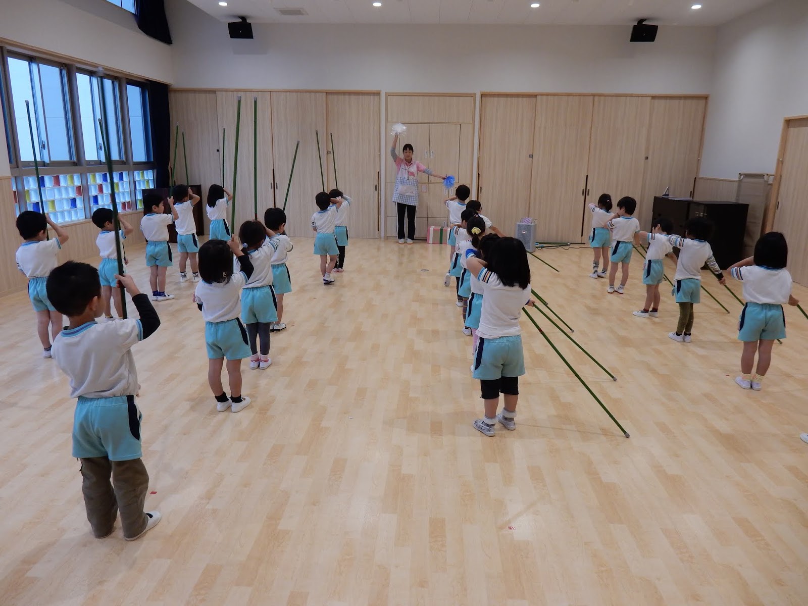 ゆりさんも鼓隊頑張っています!行進の練習や、棒を持っての旗の上げ下げ。2色のポンポンを使ってグループに別れて指示を見ます。『あおさん!』と言われた時は右半分。『しろさん!』の時は左半分。指示を聞き、先生の方をよく見て素早く上げ下げができるようになってきました。