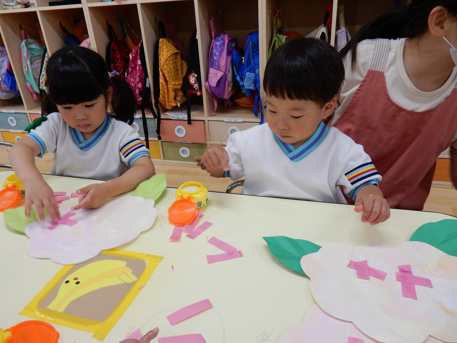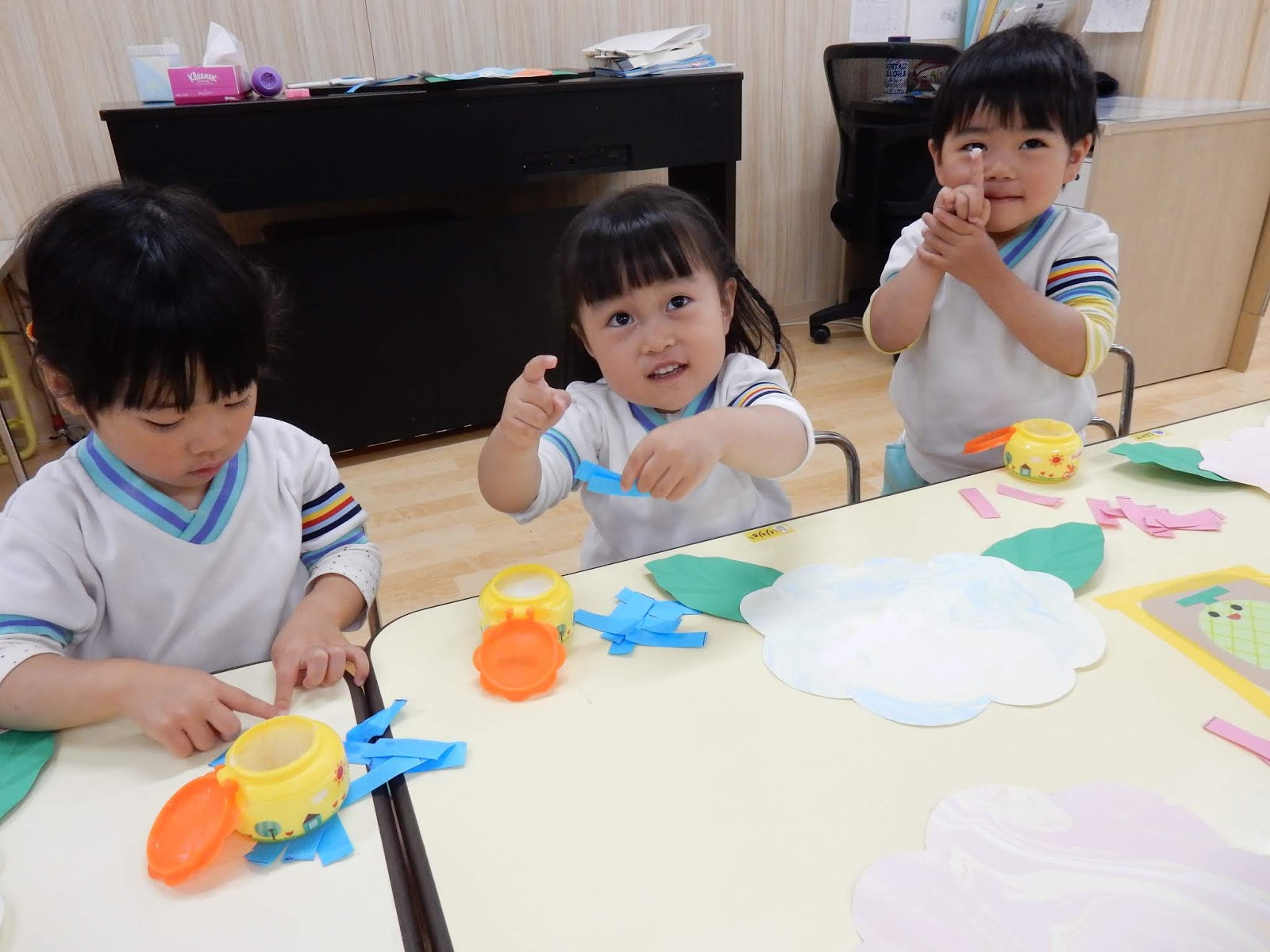 晴れた日が多く、たくさんお散歩に出かけることができたように感じる5月ですが、最後は雨でしたね。梅雨が近づいているのでしょうか…なんだか憂うつな気分になりますが、各クラスがカエルやアジサイの製作をしているのを見ると、梅雨も悪くないかな...と思います。雨の日は、雨の日を楽しめるような、そんな気持ちで居たいですね♪
