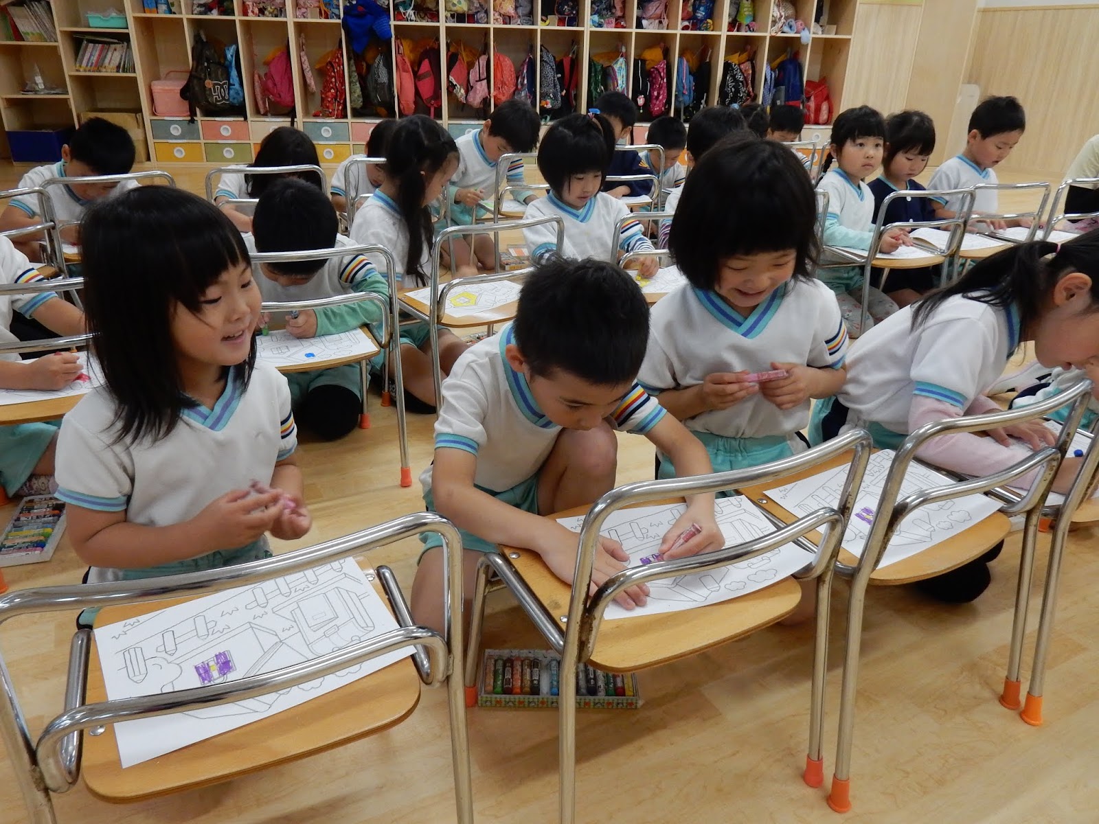 ひまわりさんは英会話教室でした。ならった単語が出てくるぬり絵をすると、『あっ!ここに“book!