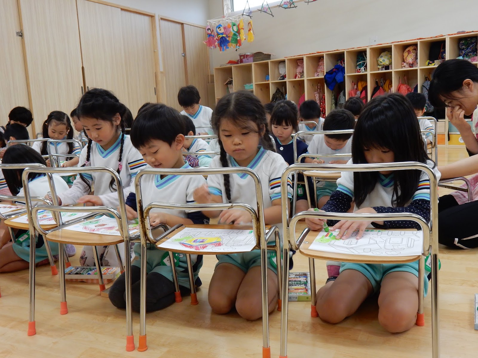 』などと見つけて友達と確認をしあっていました。色も隣の子と合わせてみたり、いろいろ考えながら進めていきます。そんな感じで塗っているのでなかなか終わりません(笑)キャンディー先生も、今日は終われるかしら…としんぱいになるほど(笑)楽しそうに塗っているのがとっても印象的でした。こんな風にだったら、自然と英語も身に付きそうですね!