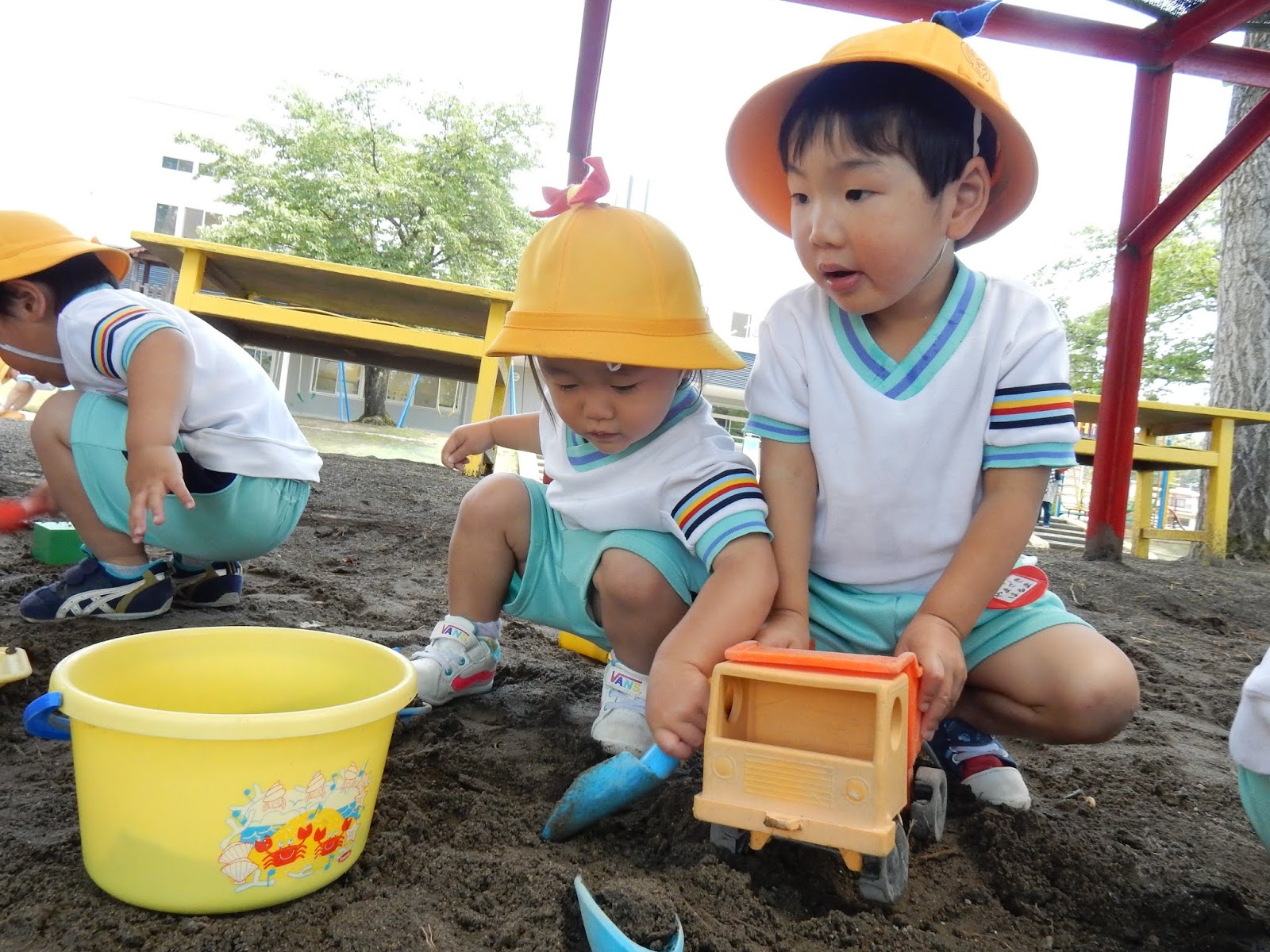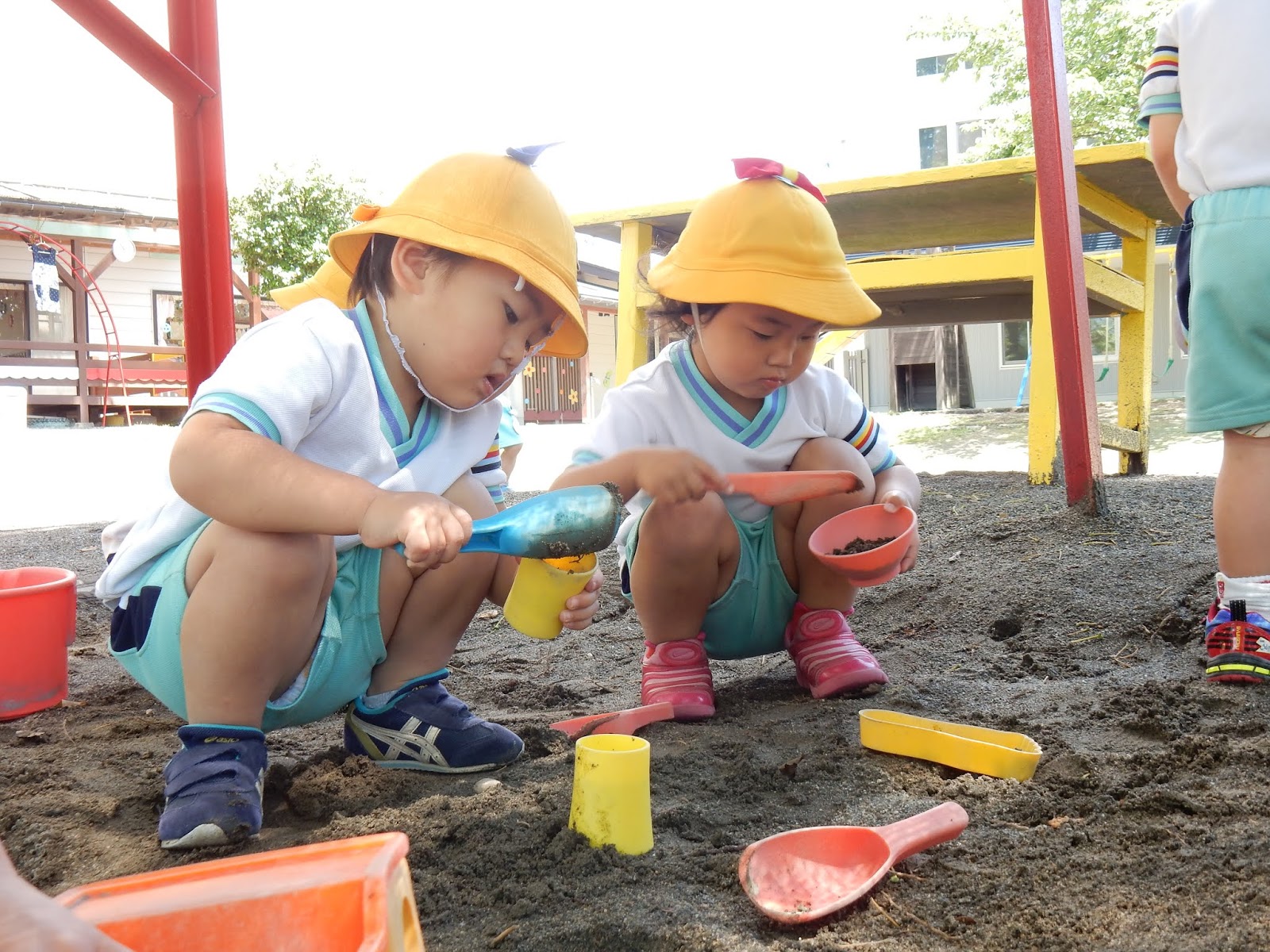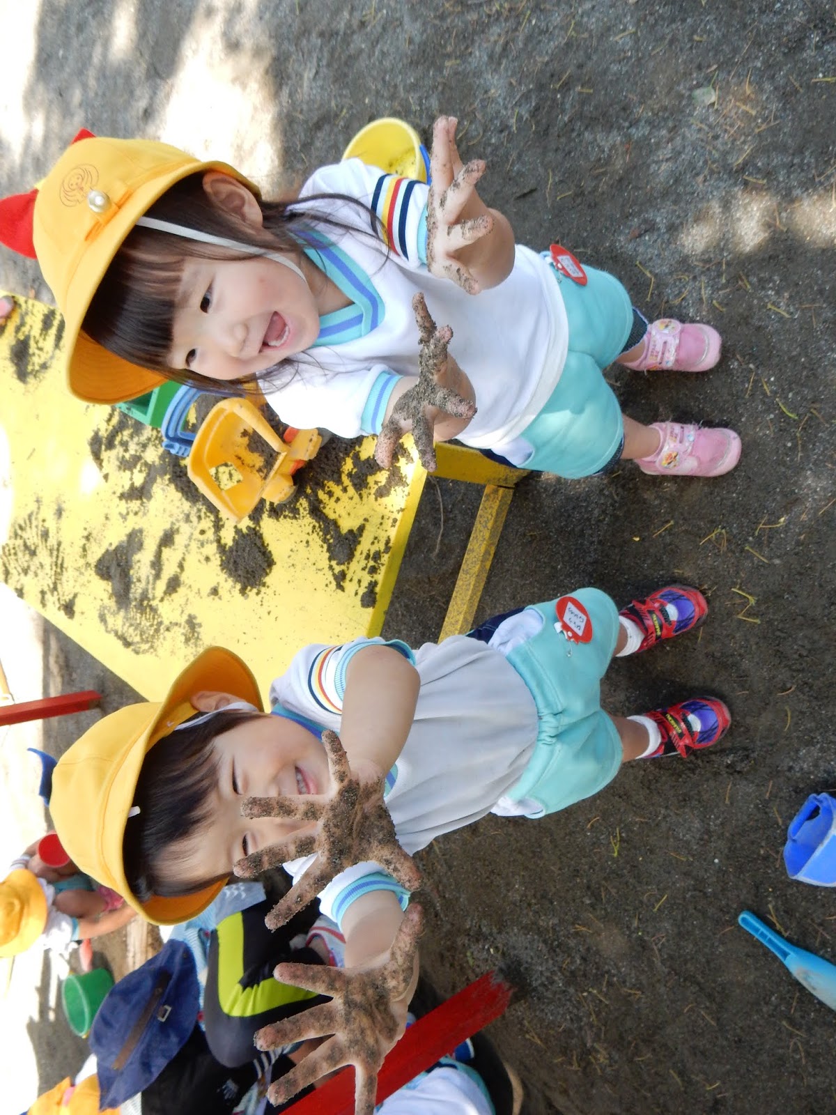 すみれさんや、たんぽぽさんも、やっぱりお外遊び!昨日、一昨日の分もいっぱい遊びました!砂場の砂が湿っていたので、今日は型抜きもやりやすかったみたいですね!たんぽぽさん、だるまさんがころんだを楽しんでいました。『もういいか~い??』と思わず聞いてしまって突っ込まれたりもしていましたが(笑)お友達と一緒に遊ぶことが楽しめるようにもなってきましたよ!