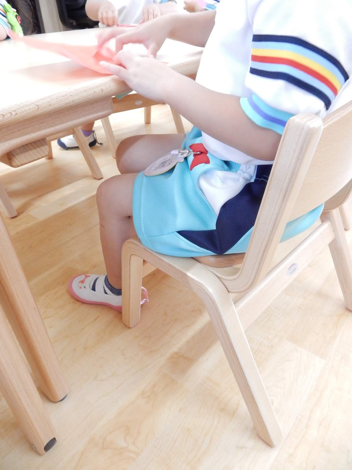 床に足の裏がピッタリつくことは、集中することにもつながり、また食事の時にはしっかりと噛むための力にもつながるようです。小さいうちから、無理なく、良い姿勢を保てるといいですね!