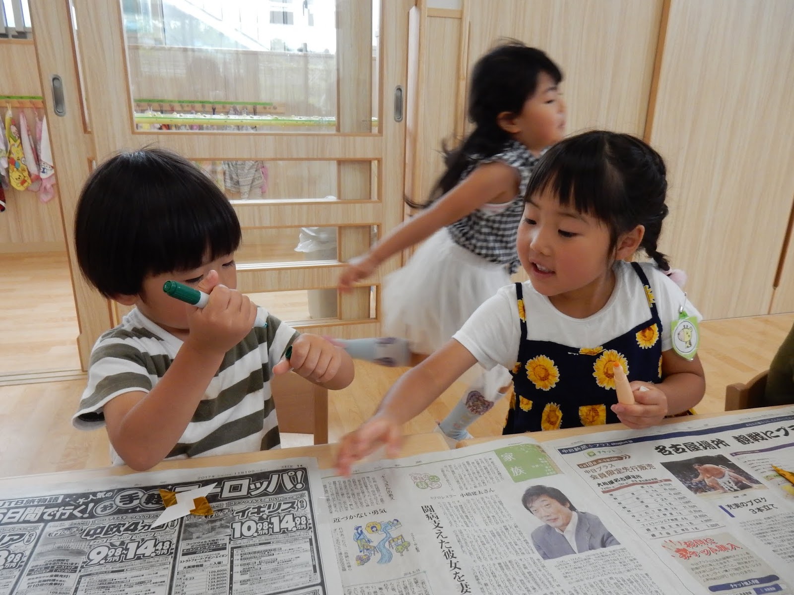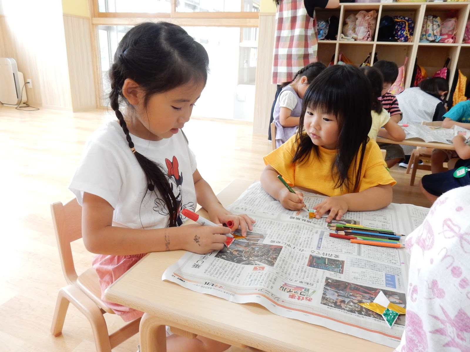 早く完成した子は、早速冠をかぶって、お隣のお部屋を覗きに来ましたよ!『〇〇くん!できた??』 『〇〇ちゃん、どう??』なぁんて、同じクラスの子の様子を気にしあう会話も、面白かったです。