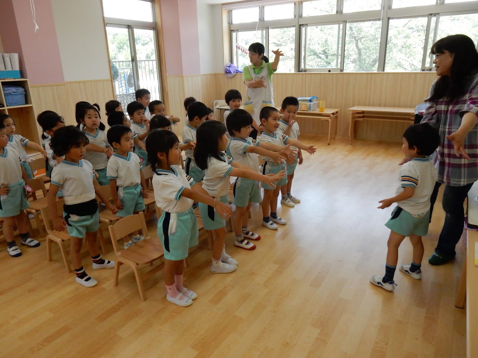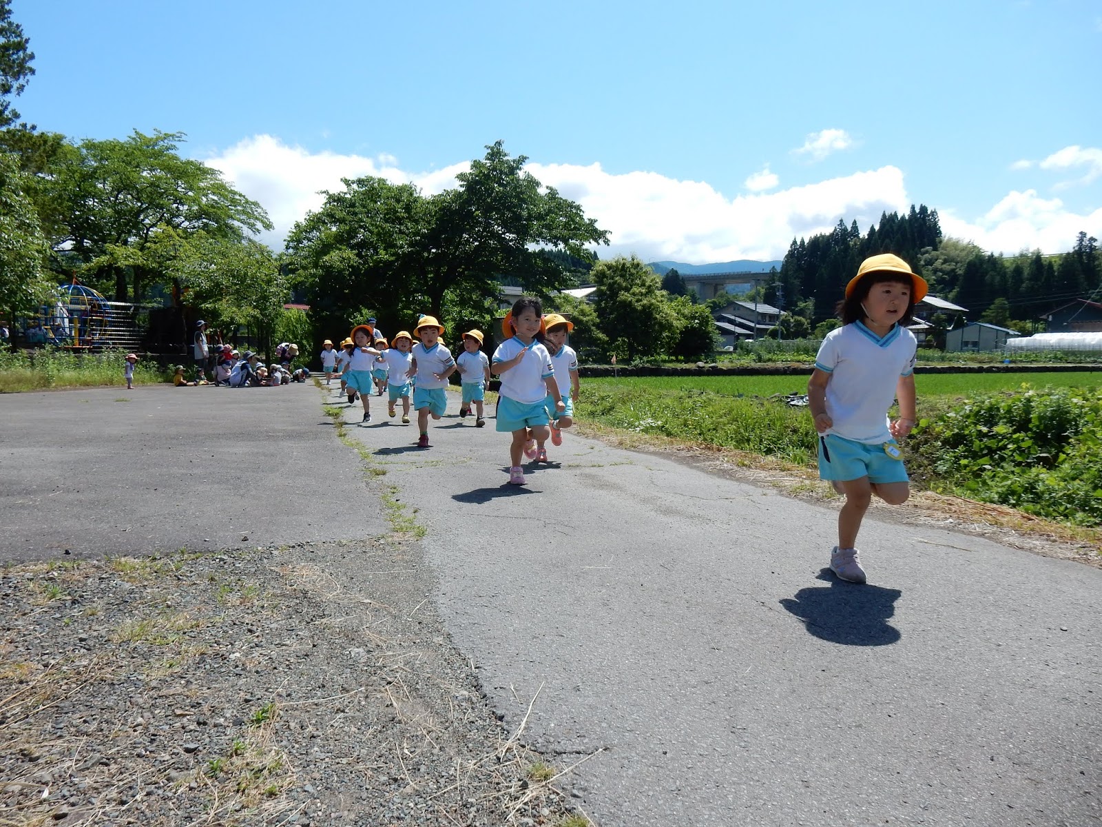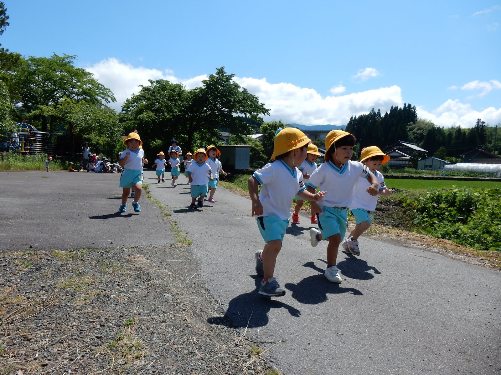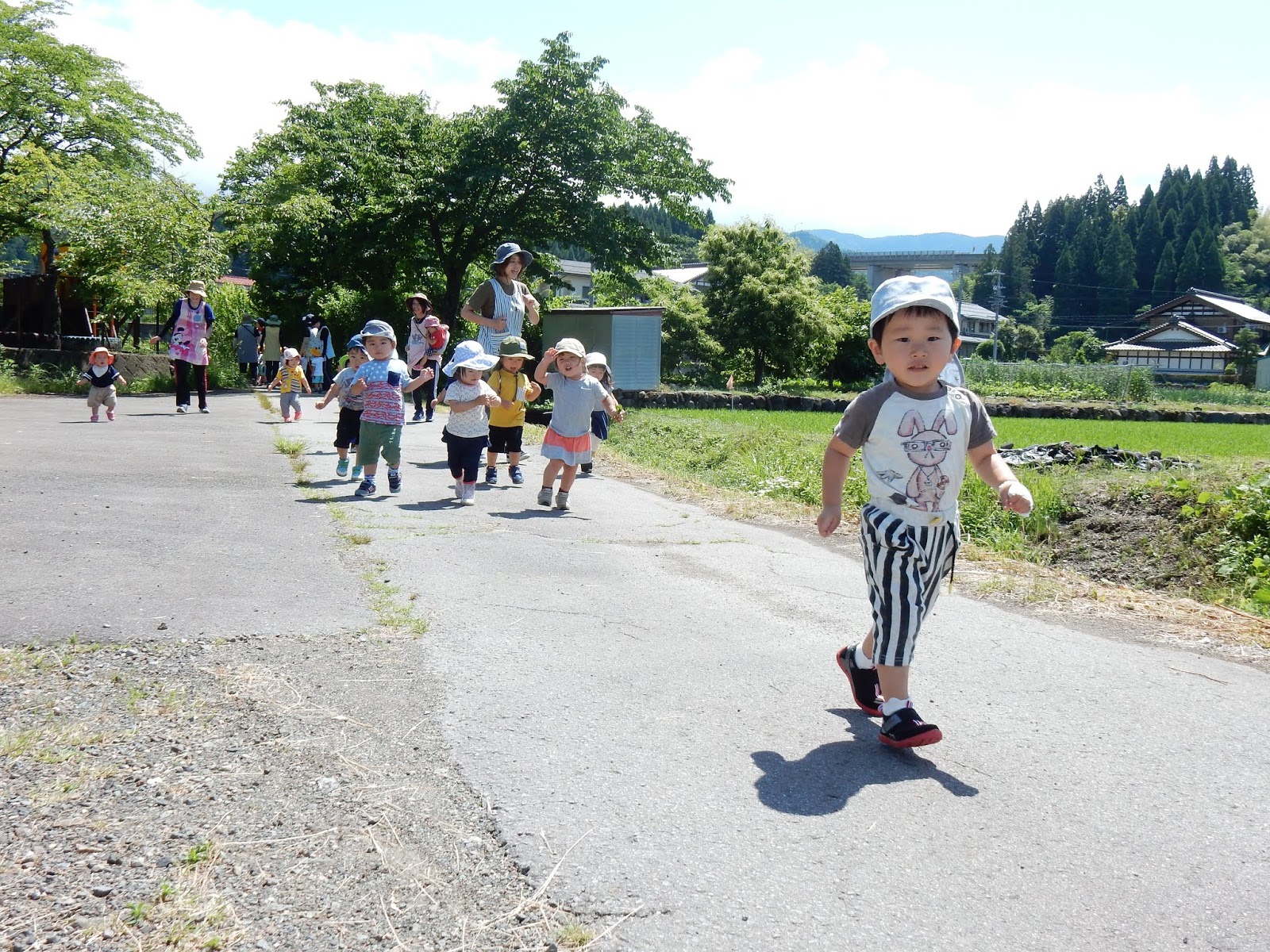 みんな体力もついてきました!プール遊びが始まると、朝のマラソンはお休みになります。それまであと少し。お天気のいい日は元気に走ります!