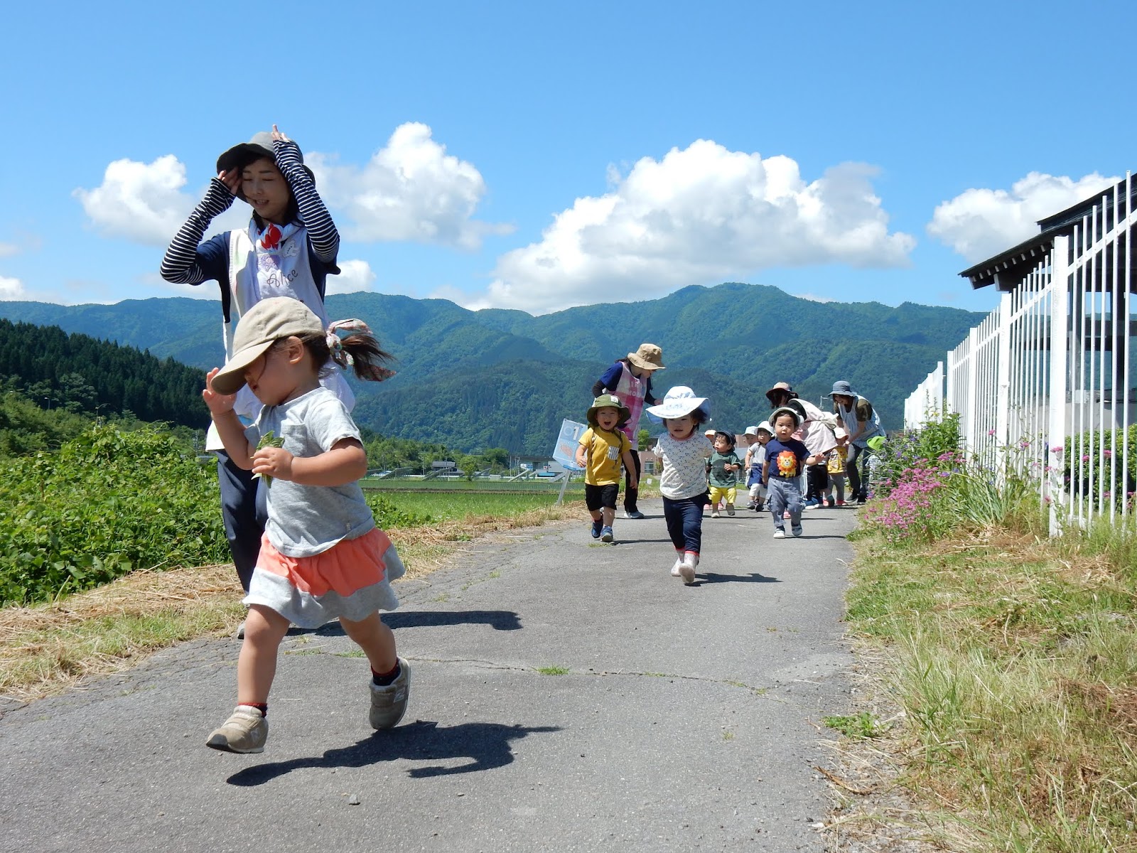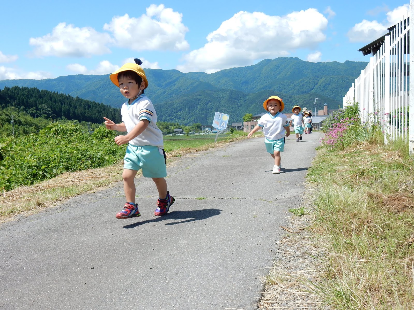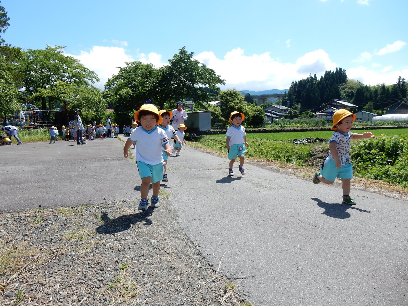 去年より長くなった距離にもすっかり慣れて、みんな速い、速い!ひまわりさん、先生よりも速く帰ってこれるようになりましたよ!