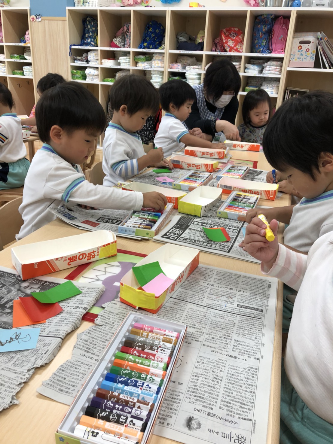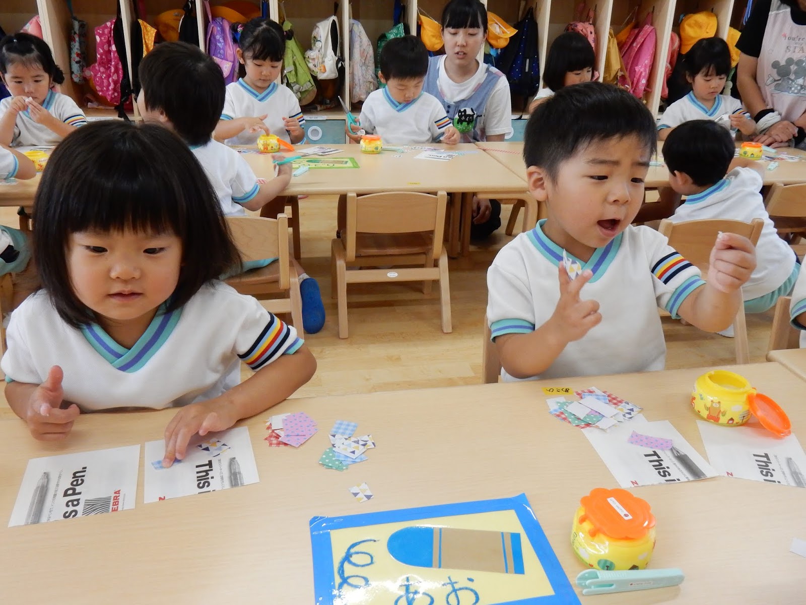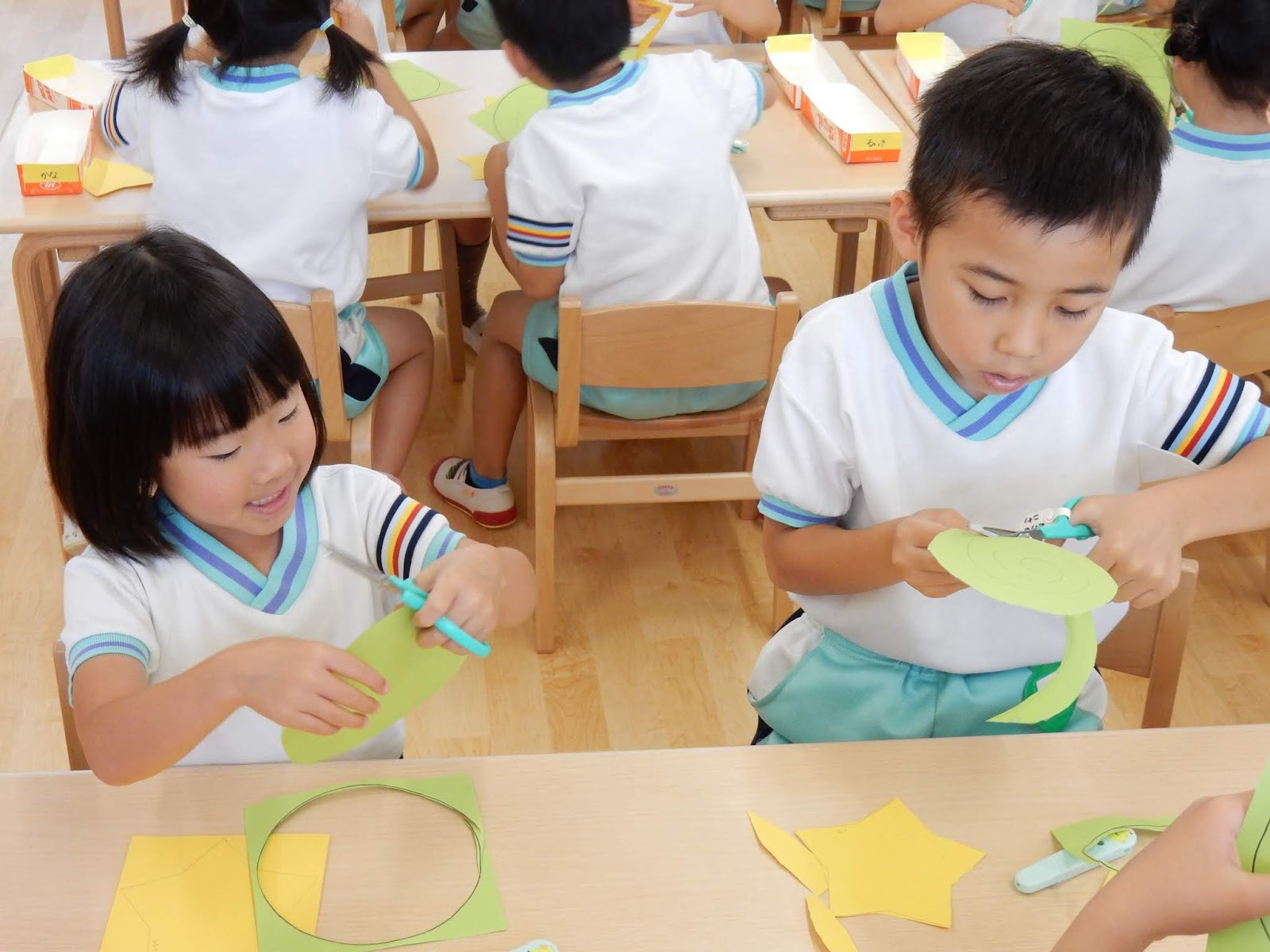 各クラス、7月7日の七夕に向けての笹飾り製作をしています。