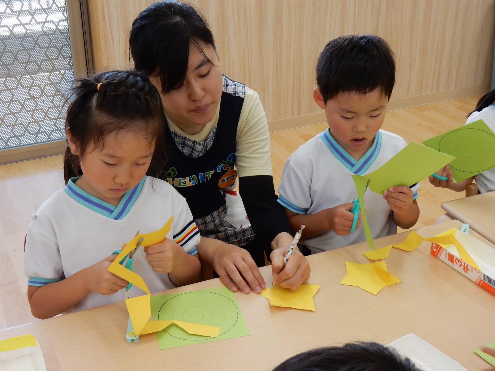 ひまわりさんは、流れ星の飾りを作りました。ぐるぐる…と線の上を切りながら『目が回る~!』と叫ぶひまわりさん(笑)