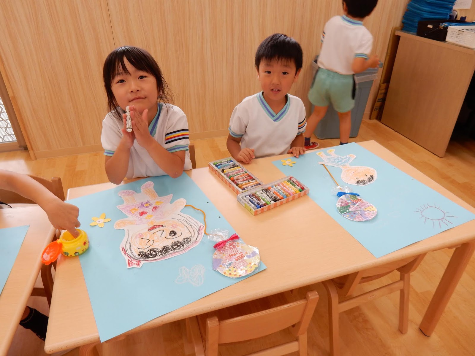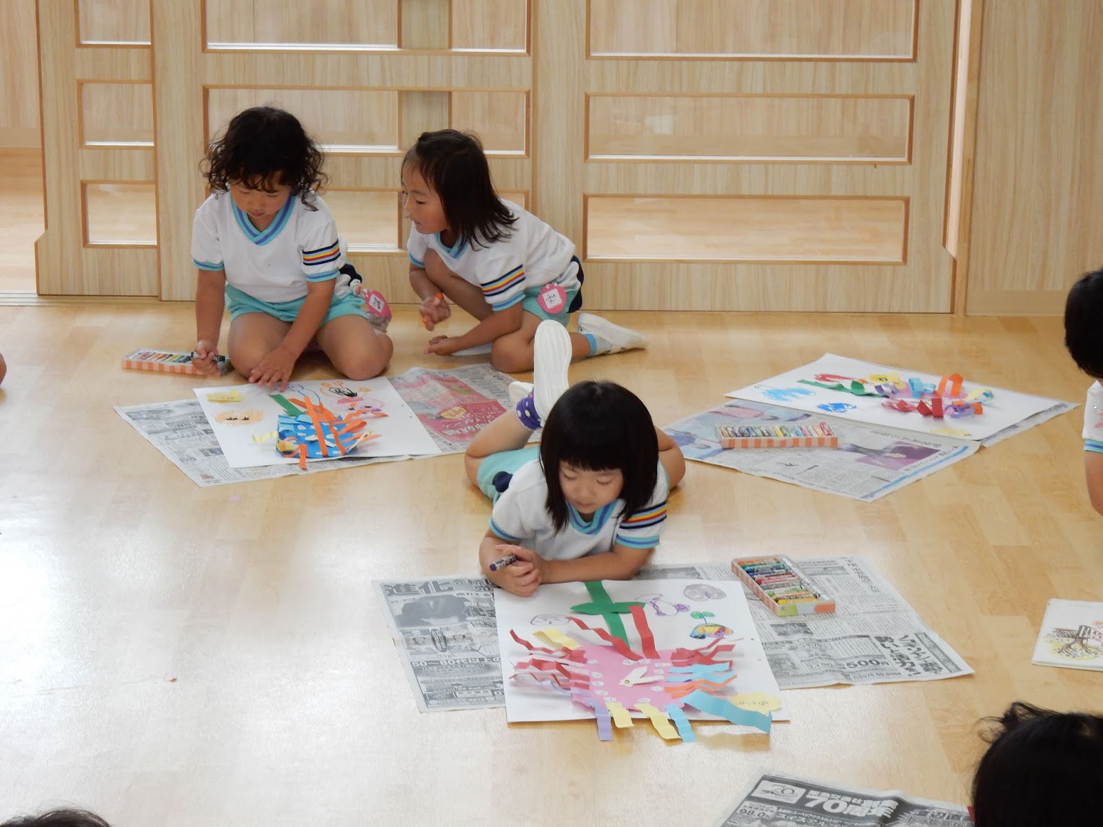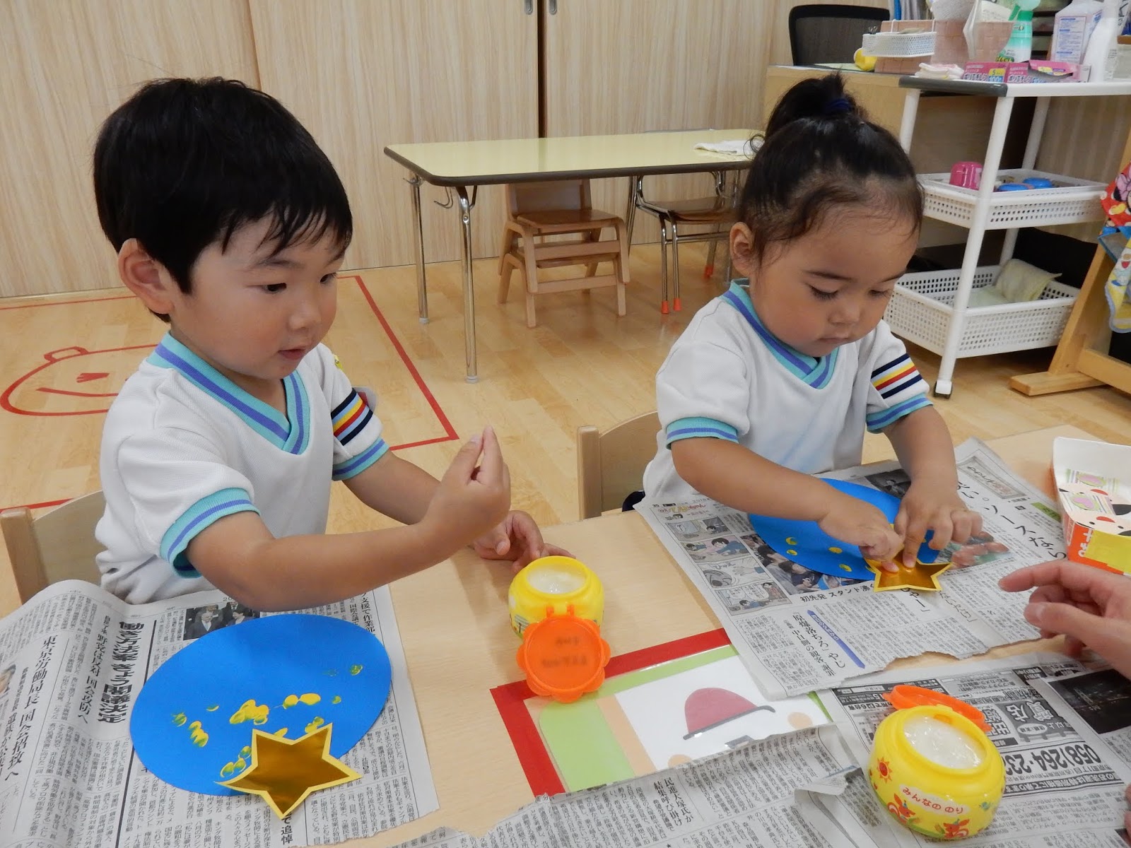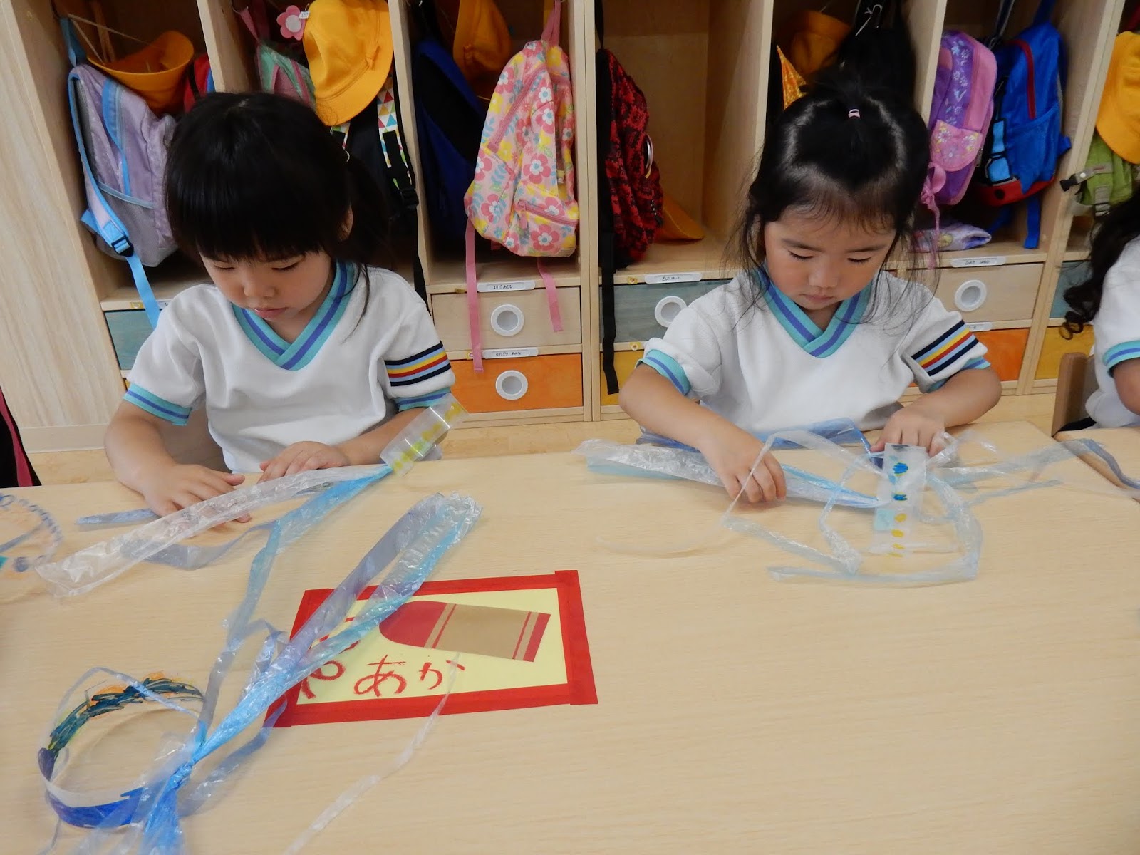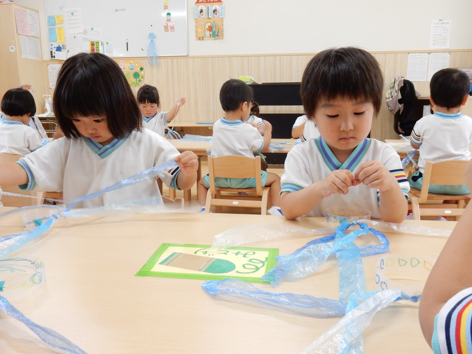 たんぽぽさんと、すみれさんは、それぞれ七夕の製作をしました。各クラス、毎日少しずつつくっていますが、本当に色々な素材が出てきて、見ていて楽しいですよ!