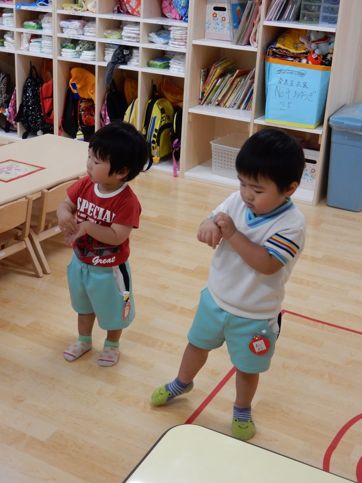すみれさんは、でんでんむしの歌。こちらも、グーとチョキを作ってでんでんむし。上手にできたかな??お歌を歌いながら体を動かすのも、とっても楽しいですよね!