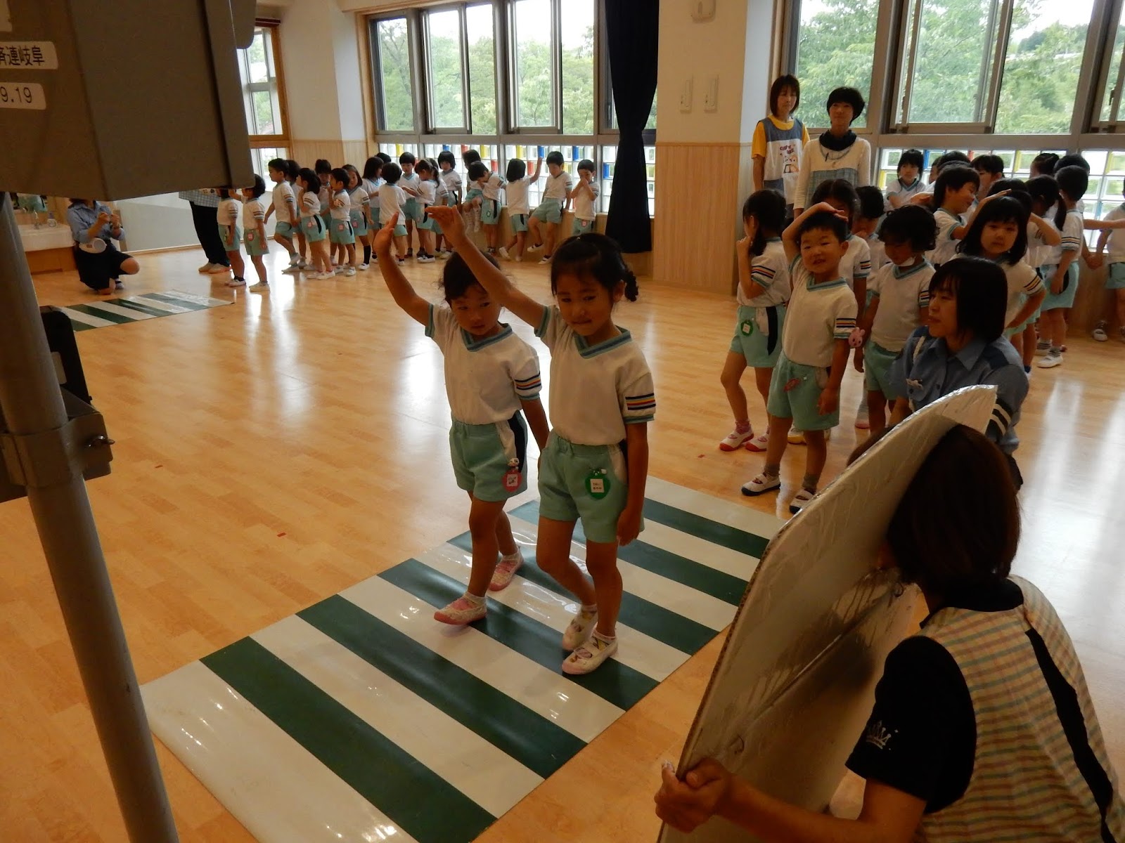交通安全教室の終盤に毎回必ず登場するケンちゃん。今日もきてくれましたよ!今日教えてもらったことを、みんな一生懸命ケンちゃんに伝えてくれました。