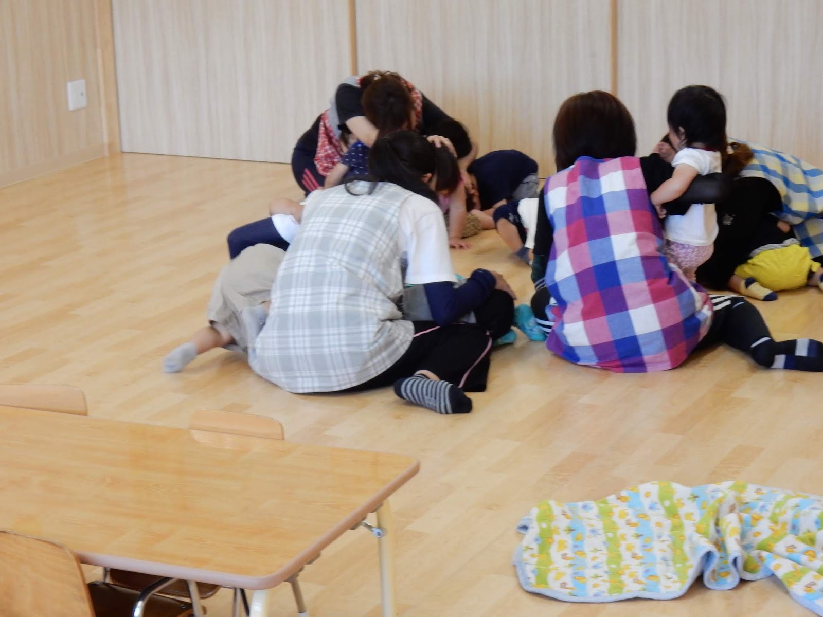 どのクラスもすぐに机の下に隠れて頭を守ることができています。先生のお話がしっかり聞けるように、みんなおしゃべりもしません。とっても上手でした。