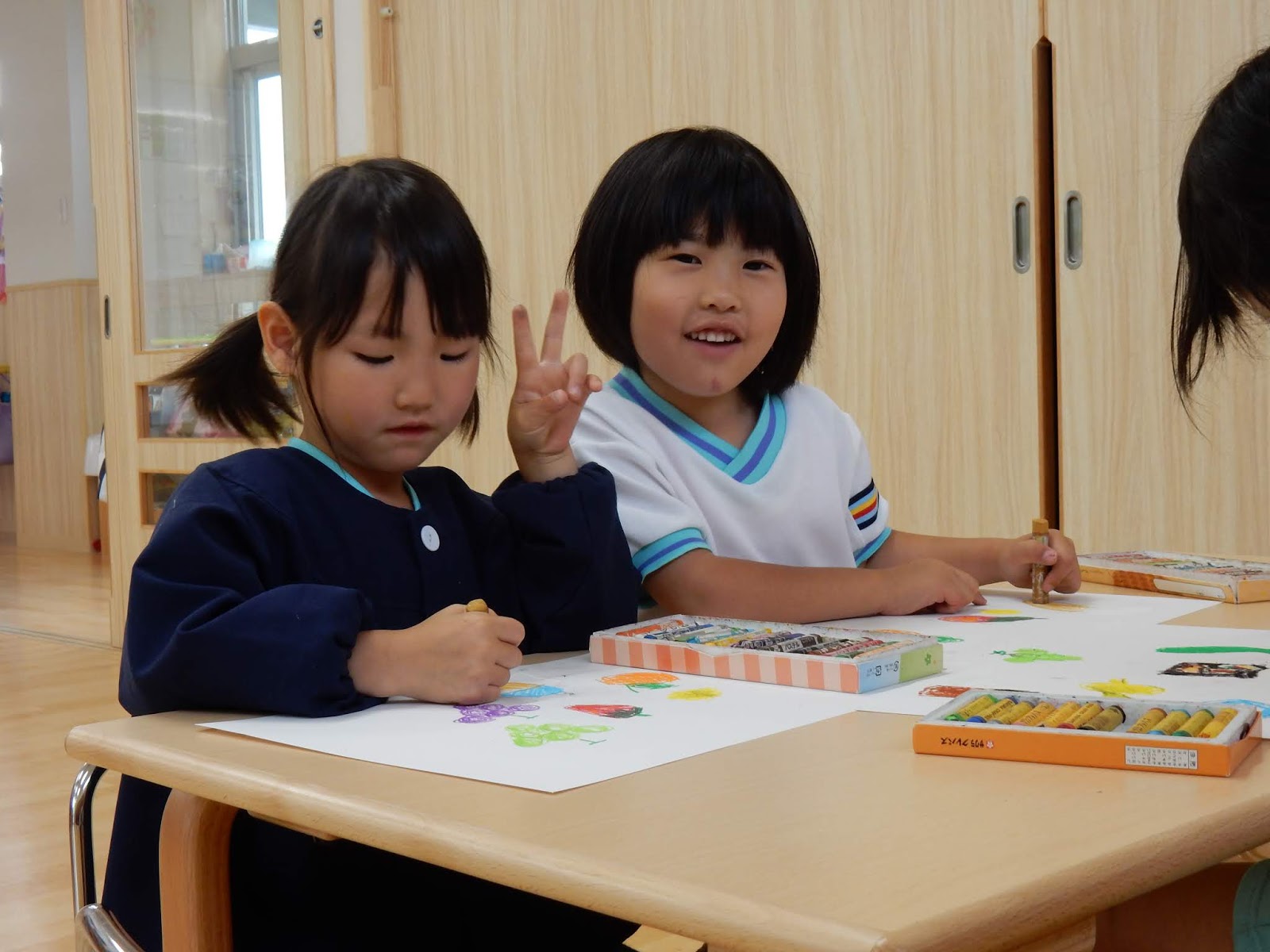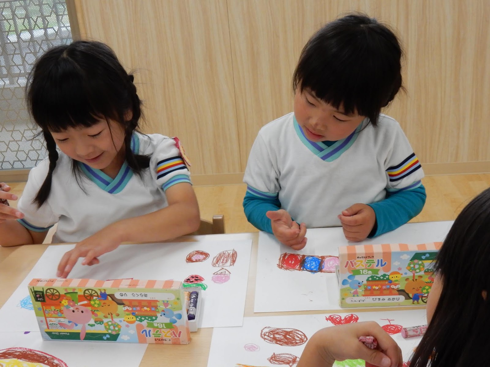とっても楽しそうに、あれが好き、これが好きというお話をしながら描いていましたよ!男の子はラーメン、ハンバーガー、女の子はアイスクリームや果物が人気でしたよ!