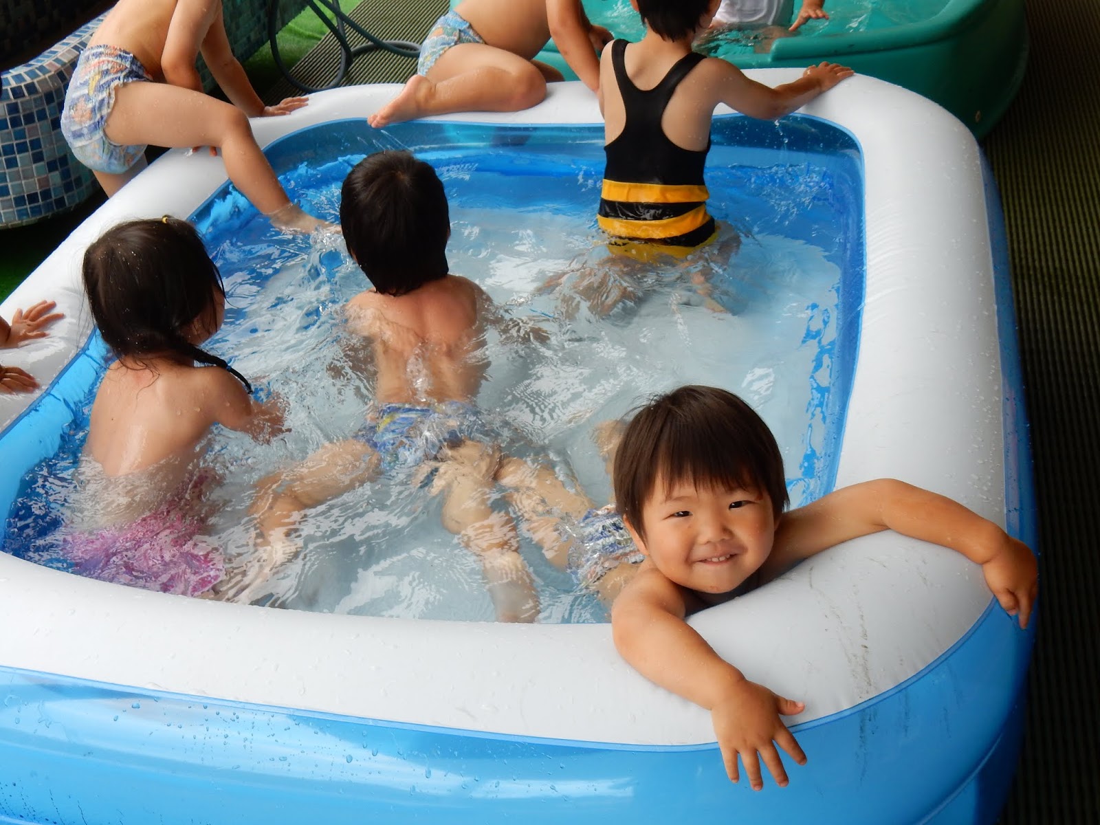6月の体操教室が延期になっていましたので、今月はなんと!!3日間もゴロゴロ先生と遊べるんです♪という事で、今日はプールでたくさん遊びましたよ!