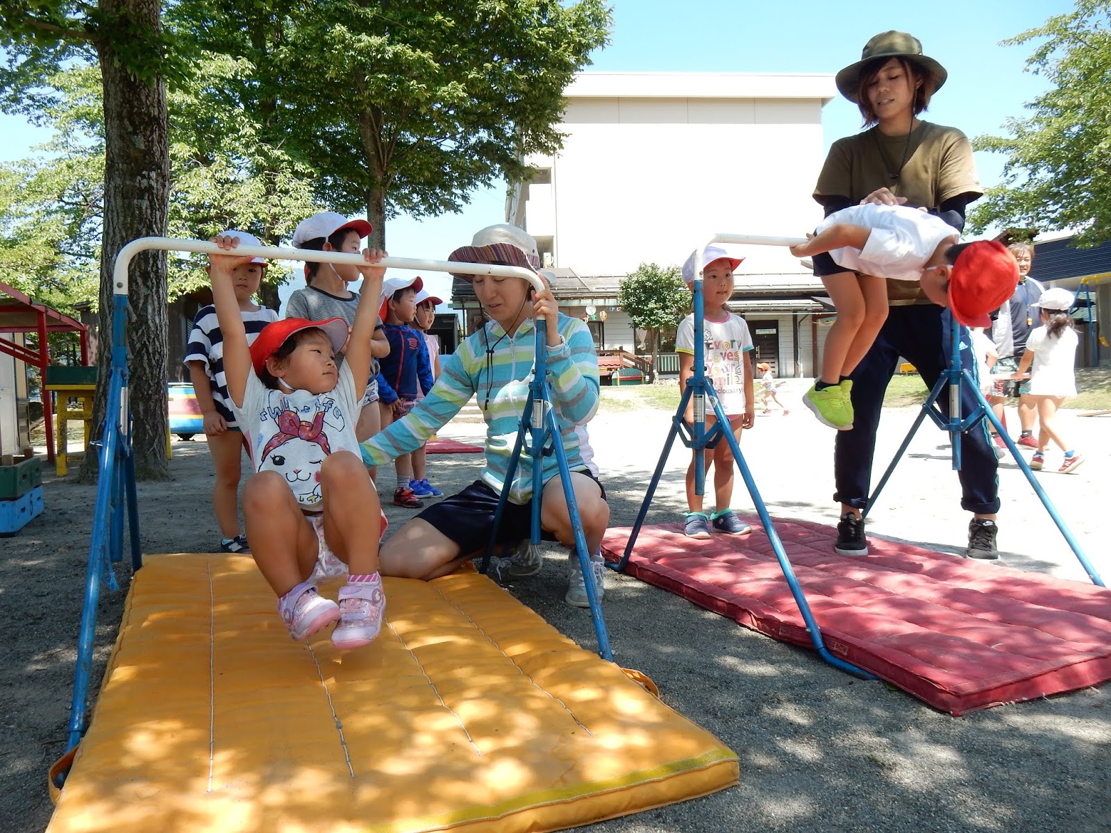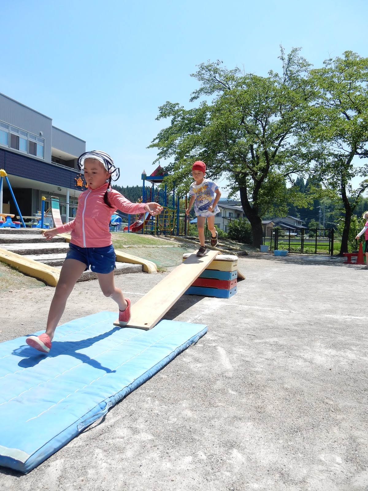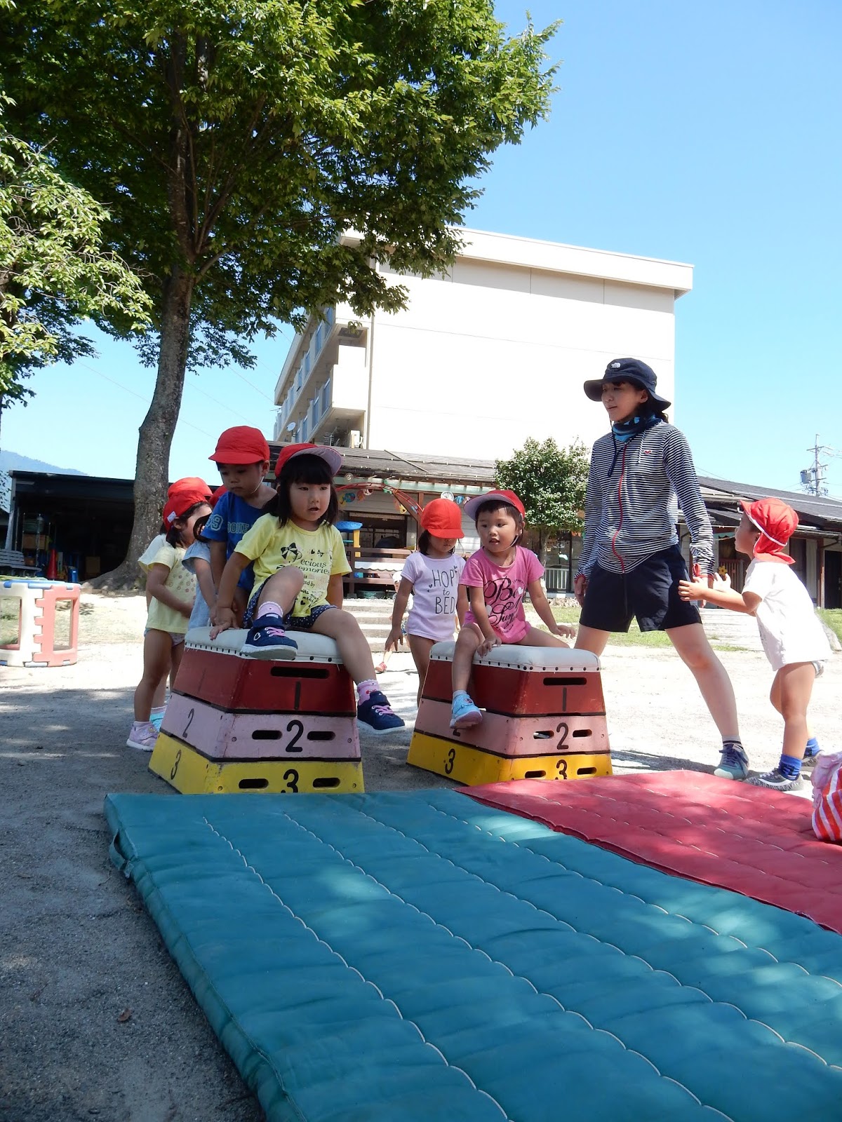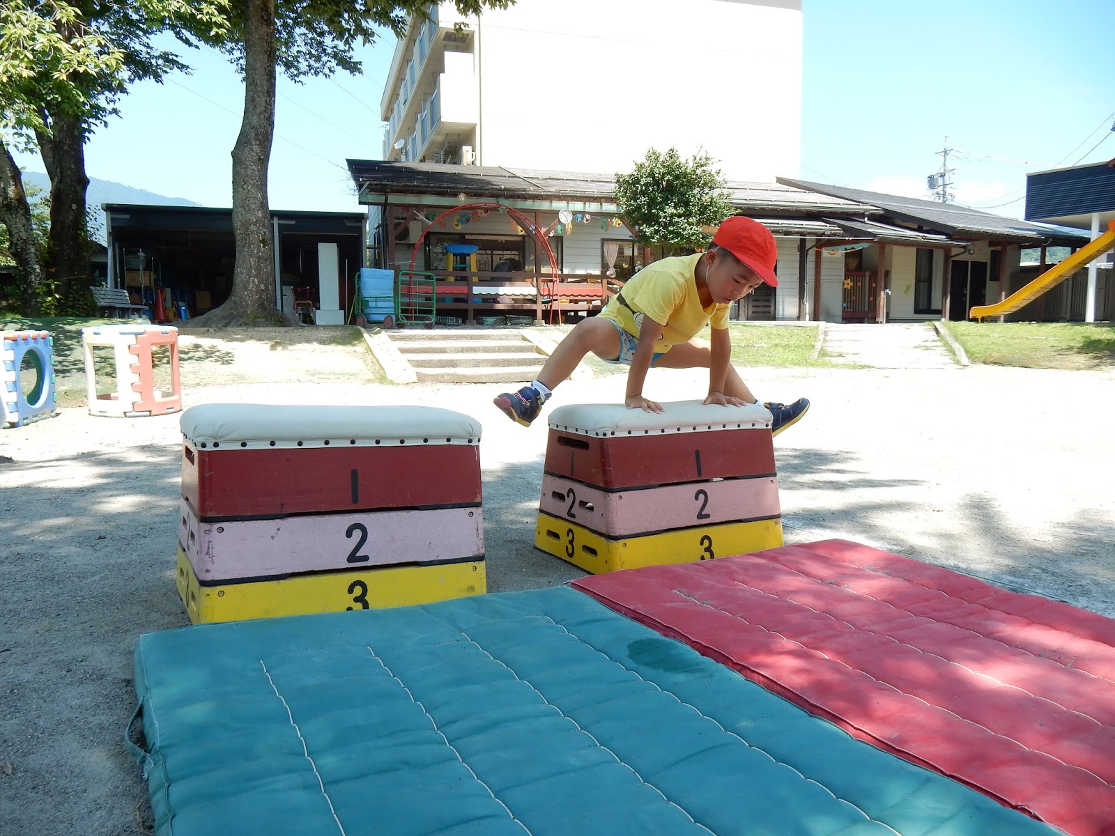 各クラス、マットや跳び箱、平均台などたくさん運動器具を使いました。