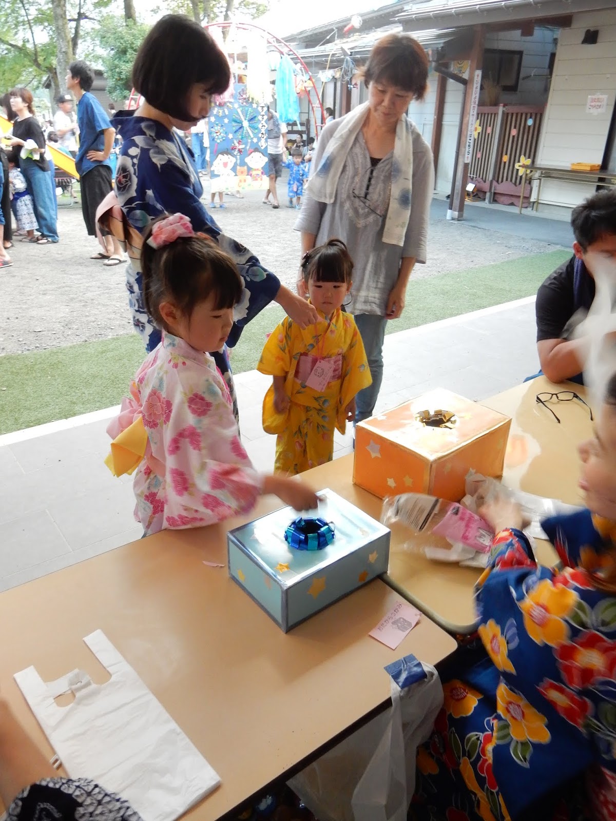 新しい園舎での、初めての夕涼み会。準備の段階からいろいろとお父さん、お母さん方にもアイデアを出していただきながら当日を迎えました。まだまだ改善点もありますが、まず、子ども達のたのさんの笑顔、お家の方々の笑顔を見る事が出来て、本当にうれしかったです。ありがとうございました。今回の反省点は、今後の園行事にも生かして行きます。