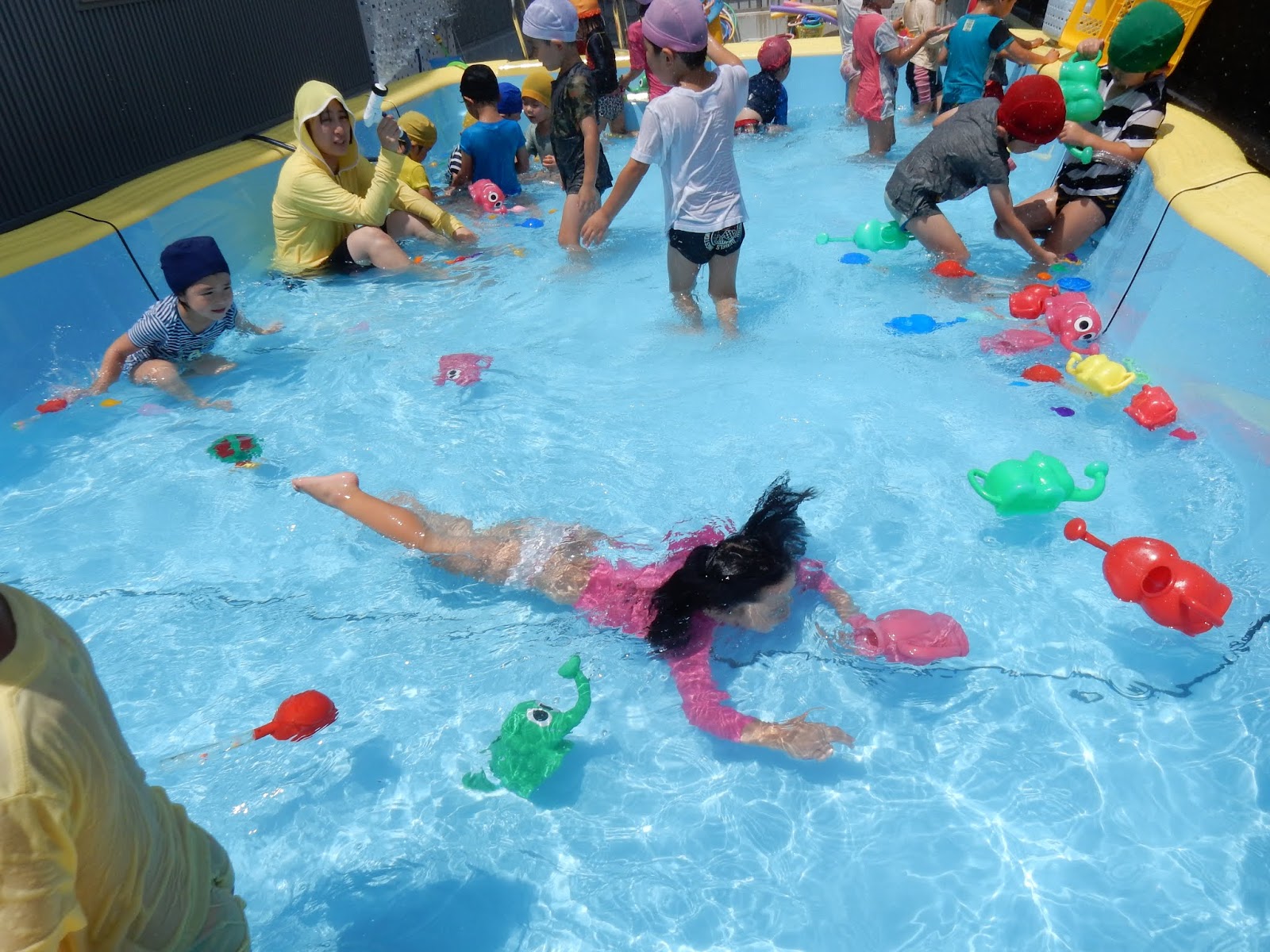 『せんせい!!みずのなかでめをあけると、めっちゃきれいやよ!』とひまわり組の男の子が教えてくれました。水の中はキラキラ光っているんですって!このことを教えてくれる、その子の目が、キラキラでしたよ!!