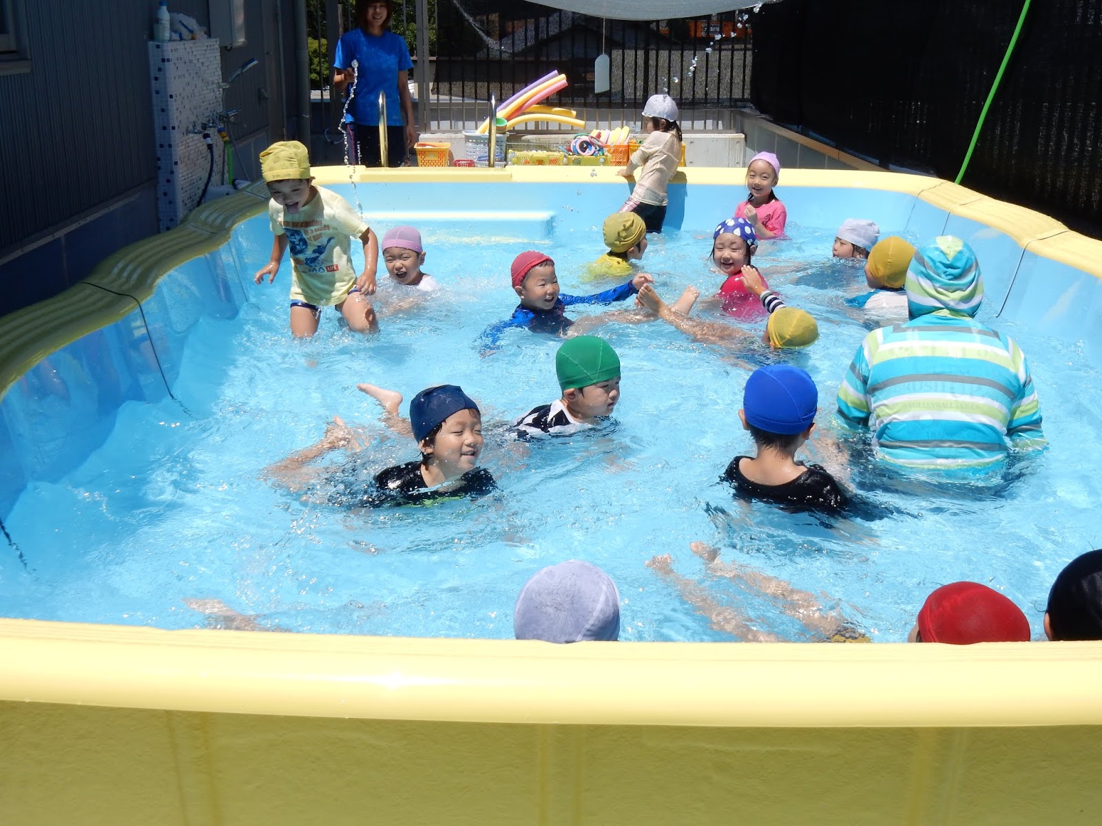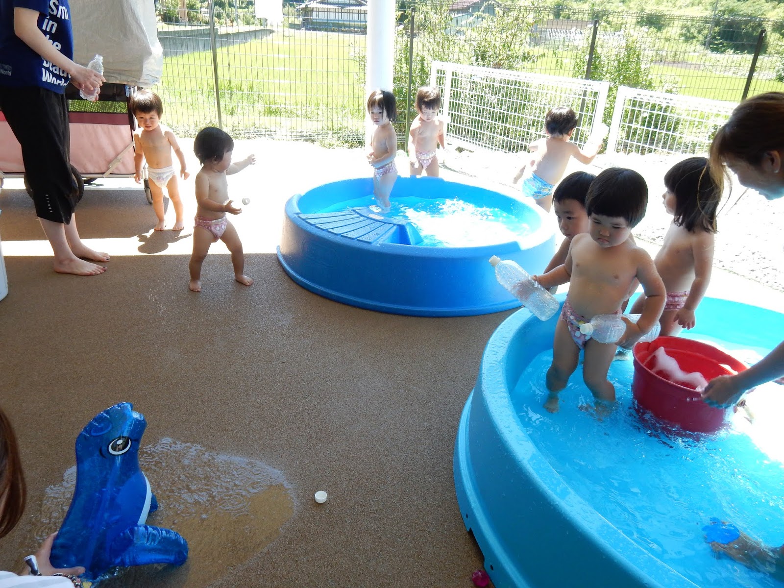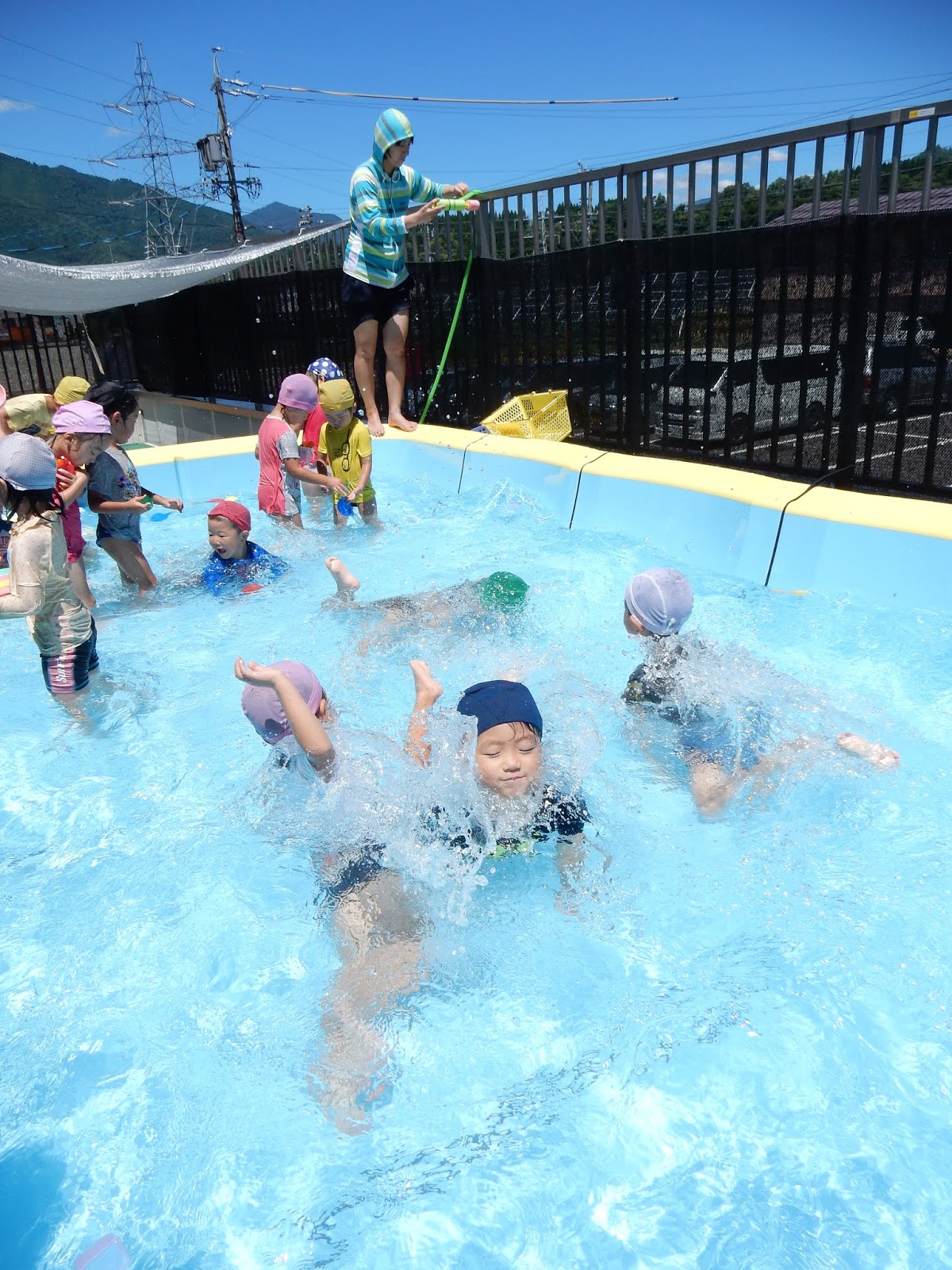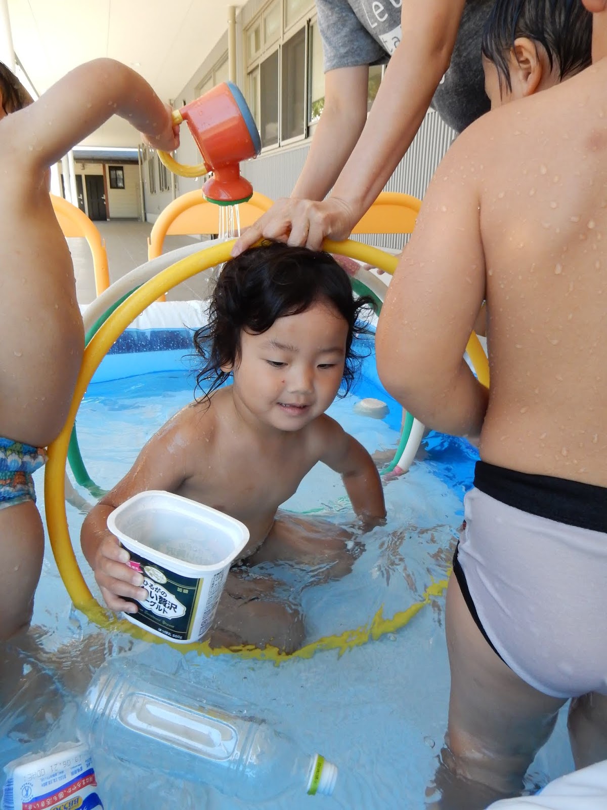 今日も各クラス、プール遊びを楽しみました。水にも慣れ、どんどん遊びがダイナミックになってきました!ゆりさんは、イルカさんが一杯!みんなジャンプして水に飛び込むんです!顔に水がかかっても全然平気!というお友達も増えてきましたね!