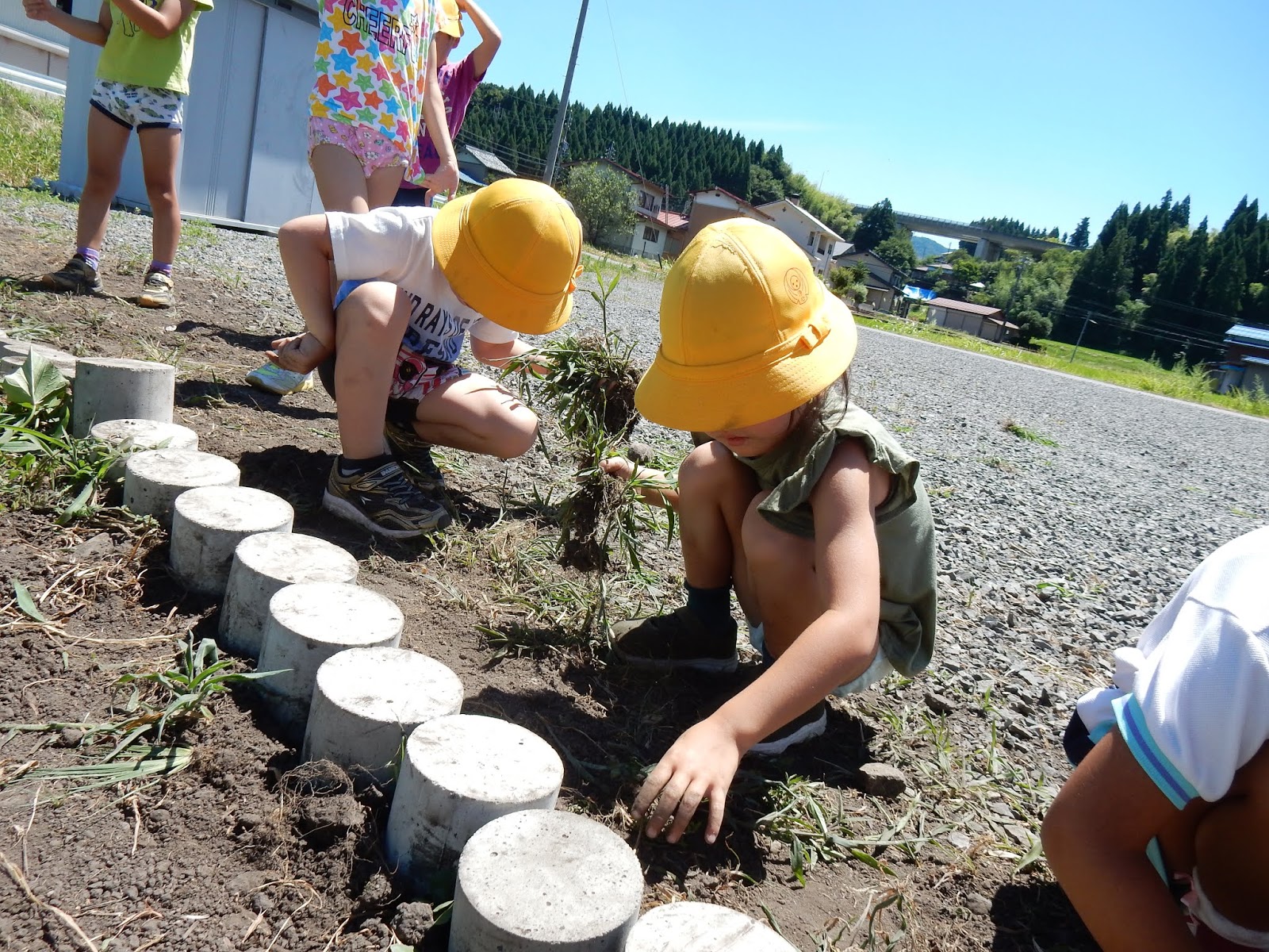 ひまわりさんは、プールの前に“なかよし畑”の草取りをしてくれましたよ!みんなで植えたサツマイモの苗、葉が生い茂ってきました!サツマイモは、土の中で育っているので、外から見ても状況が分かりません。本当に、大きくなっているのかな!?