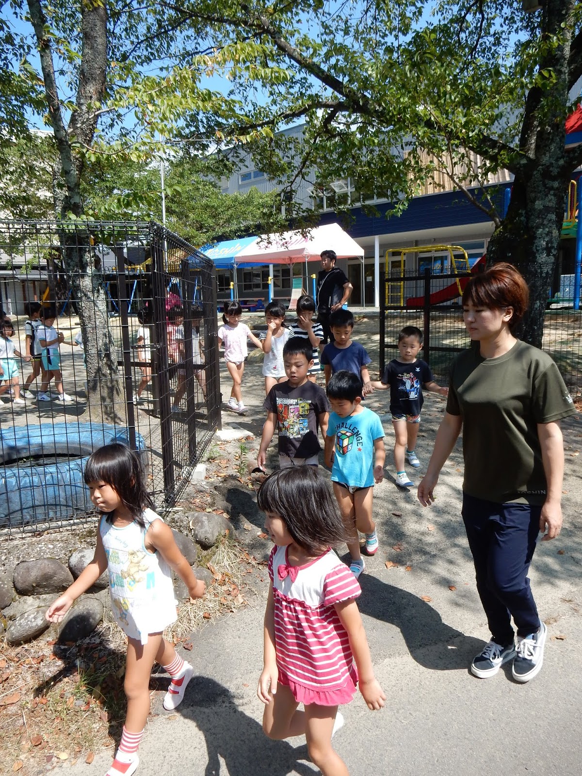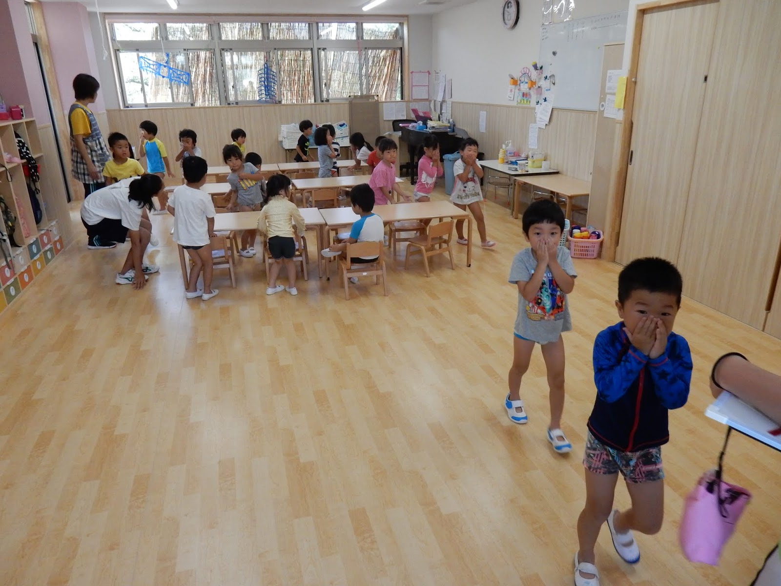 いつもは朝から子ども達の元気な声が響いている園内ですが、指示を待つこの時間、本当に静まり返っていました。それだけみんな真剣です。
