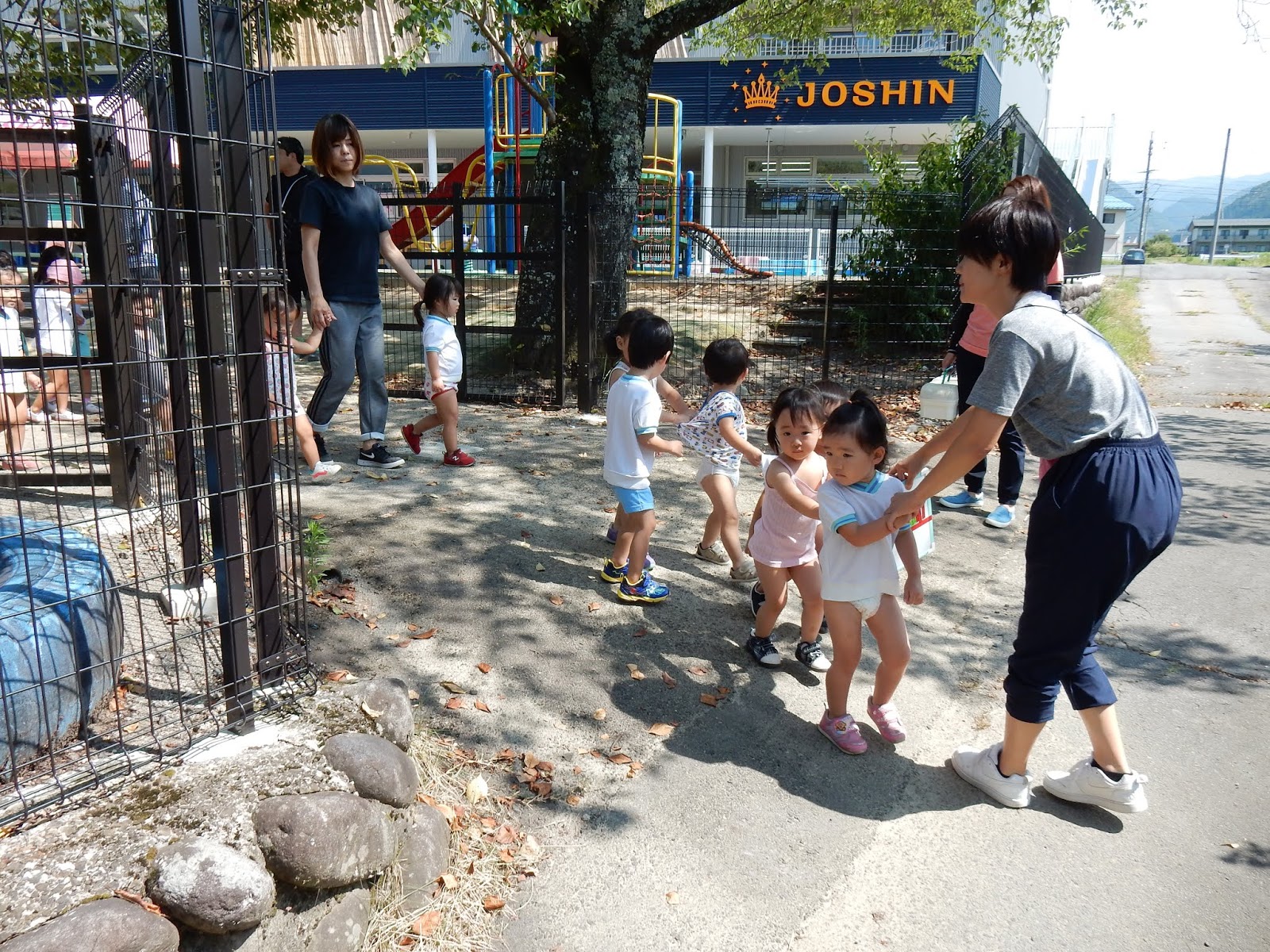 非常階段を利用する大きいクラスのお友達も、階段の移動に慣れてきたので、とてもスムーズに避難が完了しました。ここまでだれもけが人おりません!