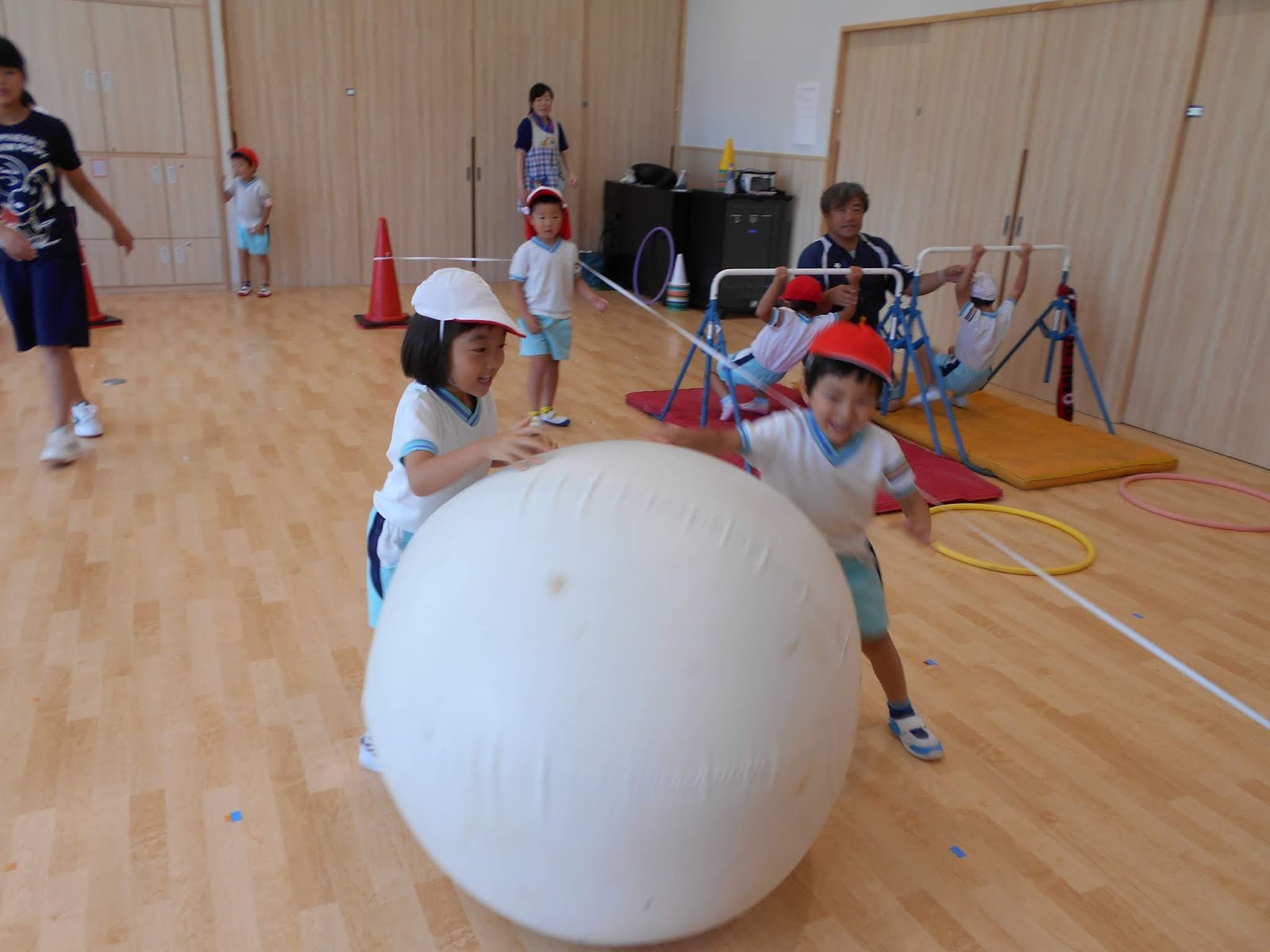 運動会でやる”大玉転がし~!”大玉を転がしながらケラケラと笑いがでるくらい、楽しい~!